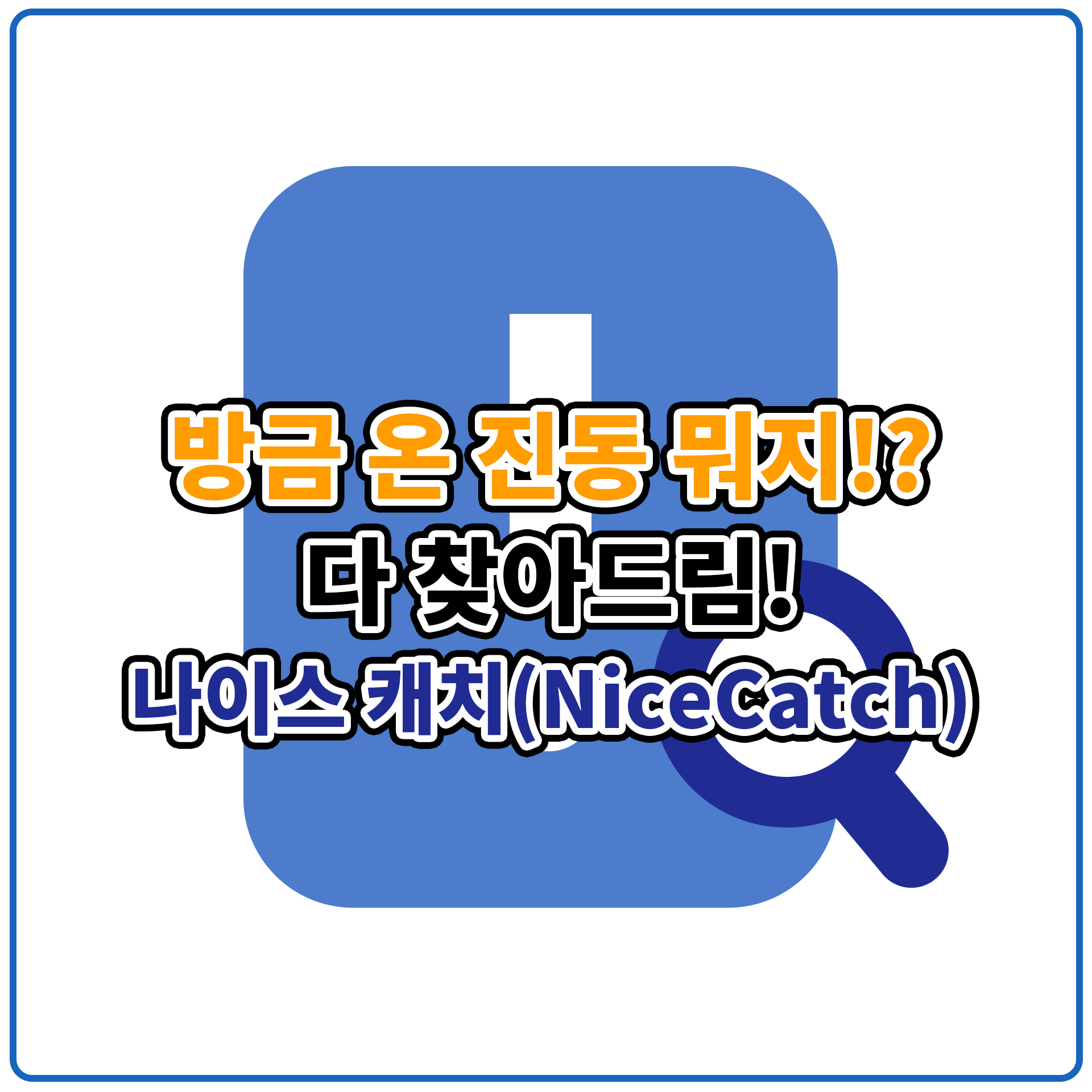 정확히 나이스 캐치 앱이 어떤 앱이냐 하면 "스마트폰에 울린 진동 및 알림 소리를 기록하여 놓친 알림이나 방금 진동이 어떤 알림인지 확인할 수 있는 앱" 입니다.