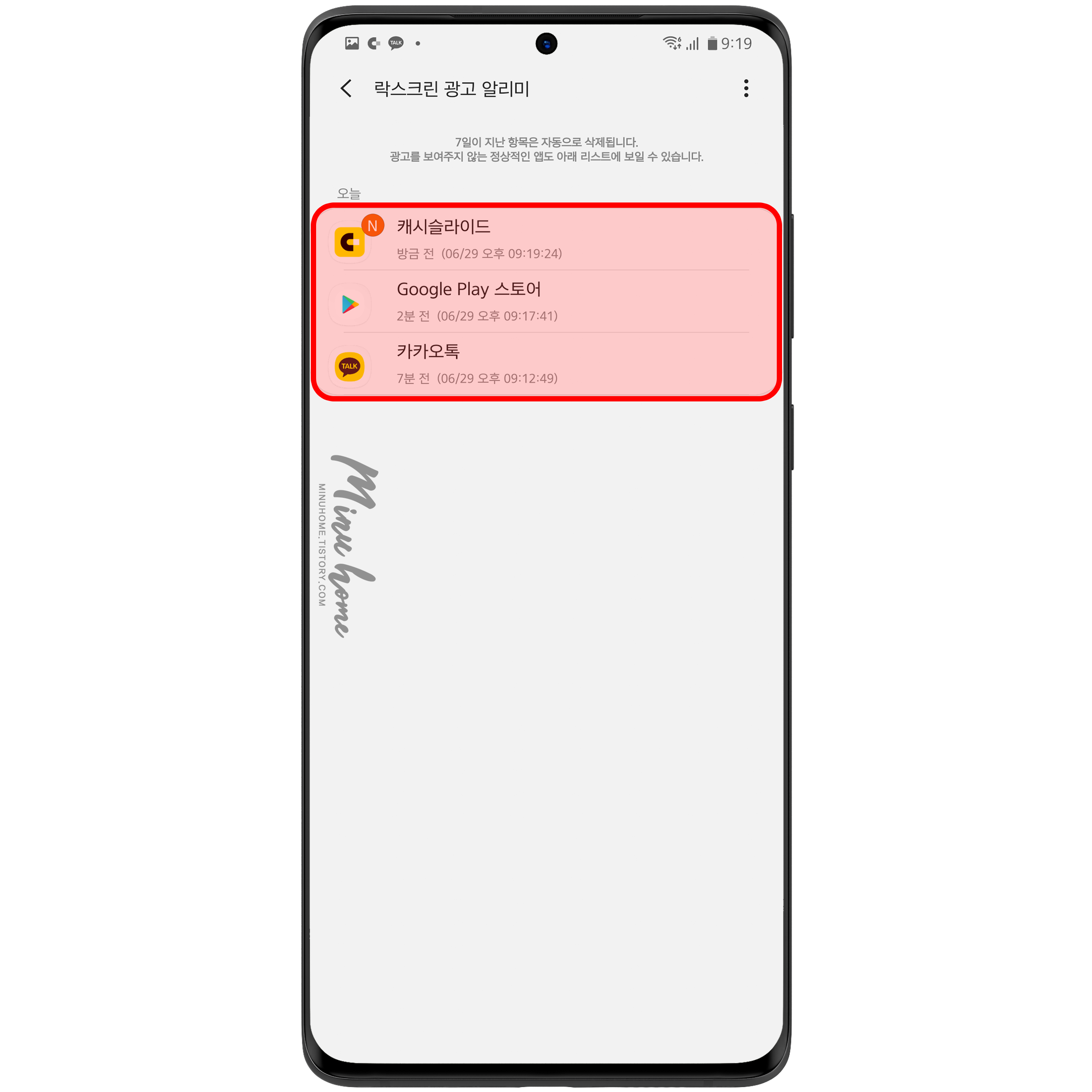 만약 잠금화면 해제시 광고가 나타나고, 본인이 사용하던 앱이 아닌데 광고 알리미의 리스트에 표시가 된다면 해당 앱을 광고 발생 원인으로 생각할 수 있습니다.