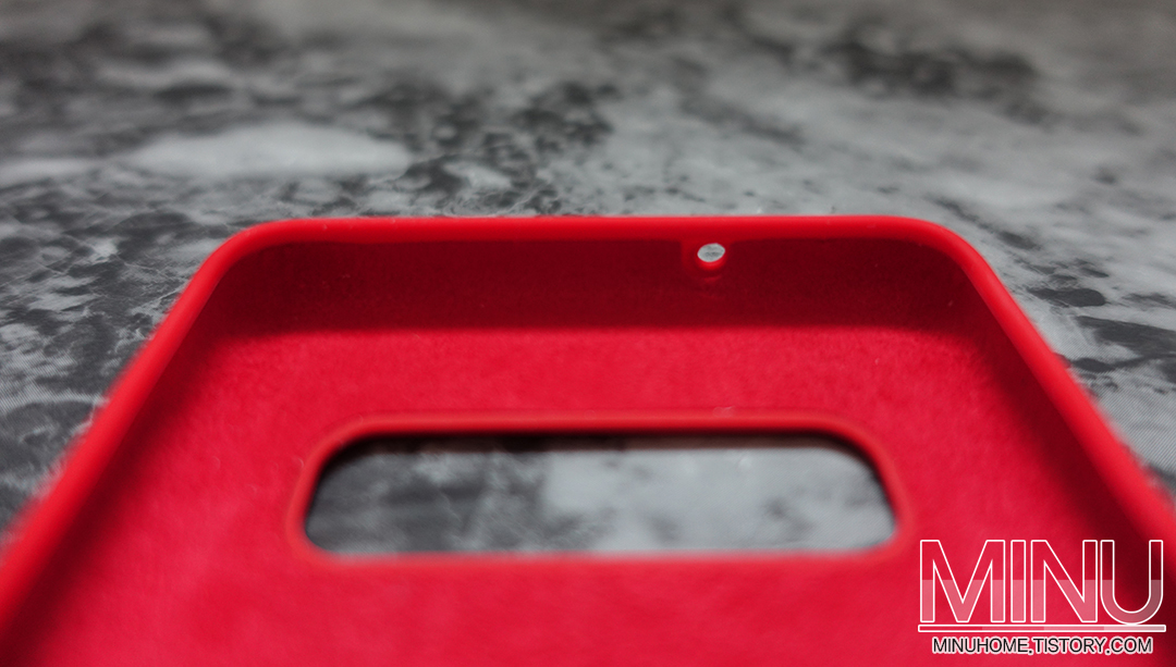 또한 안쪽에 스웨이드 재질로 처리가 되어있어 미세한 먼지가 들어가 제품의 후면이 긁히는 일은 없을 것 같습니다.