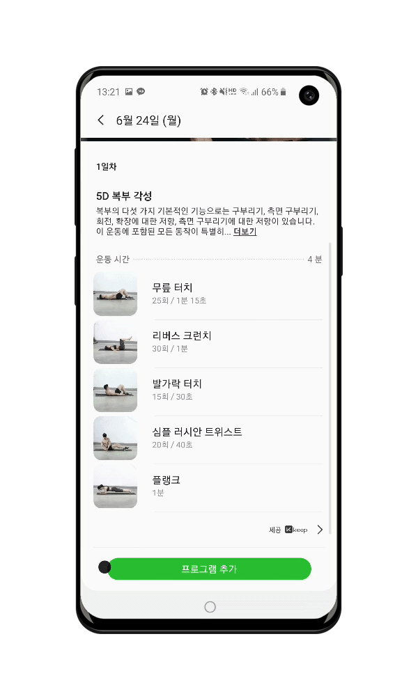 예시로 ‘5D복부 운동’을 선택하여 보겠습니다.