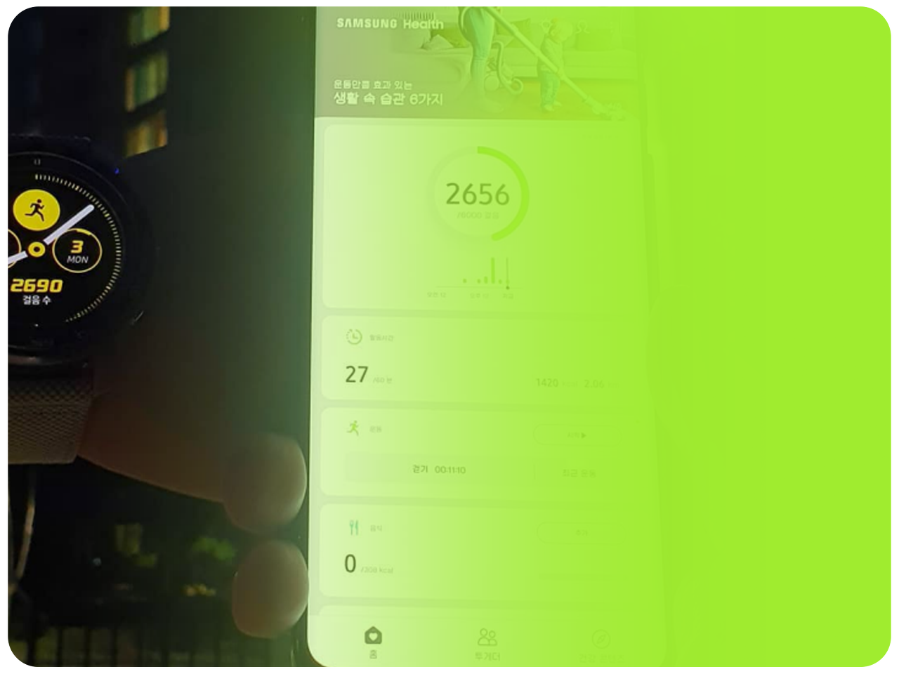 제 주변 사람들을 보면 삼성 헬스를 워치랑 연동하여 만보계나 글로벌 도전을 주로 사용하는 것을 볼 수 있습니다.