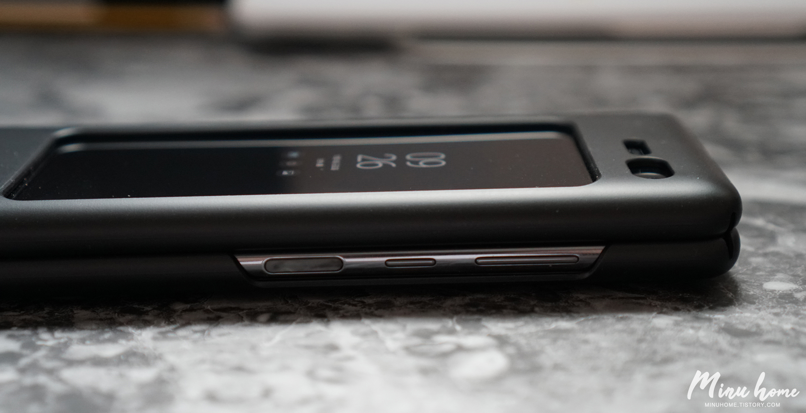 사용하다보니 아쉬운점이 커버 디스플레이를 사용할때 엣지부분을 스와이프 혹은 키보드를 칠때 커버 디스플레이를 감싸는 부분이 터치가 어렵습니다.