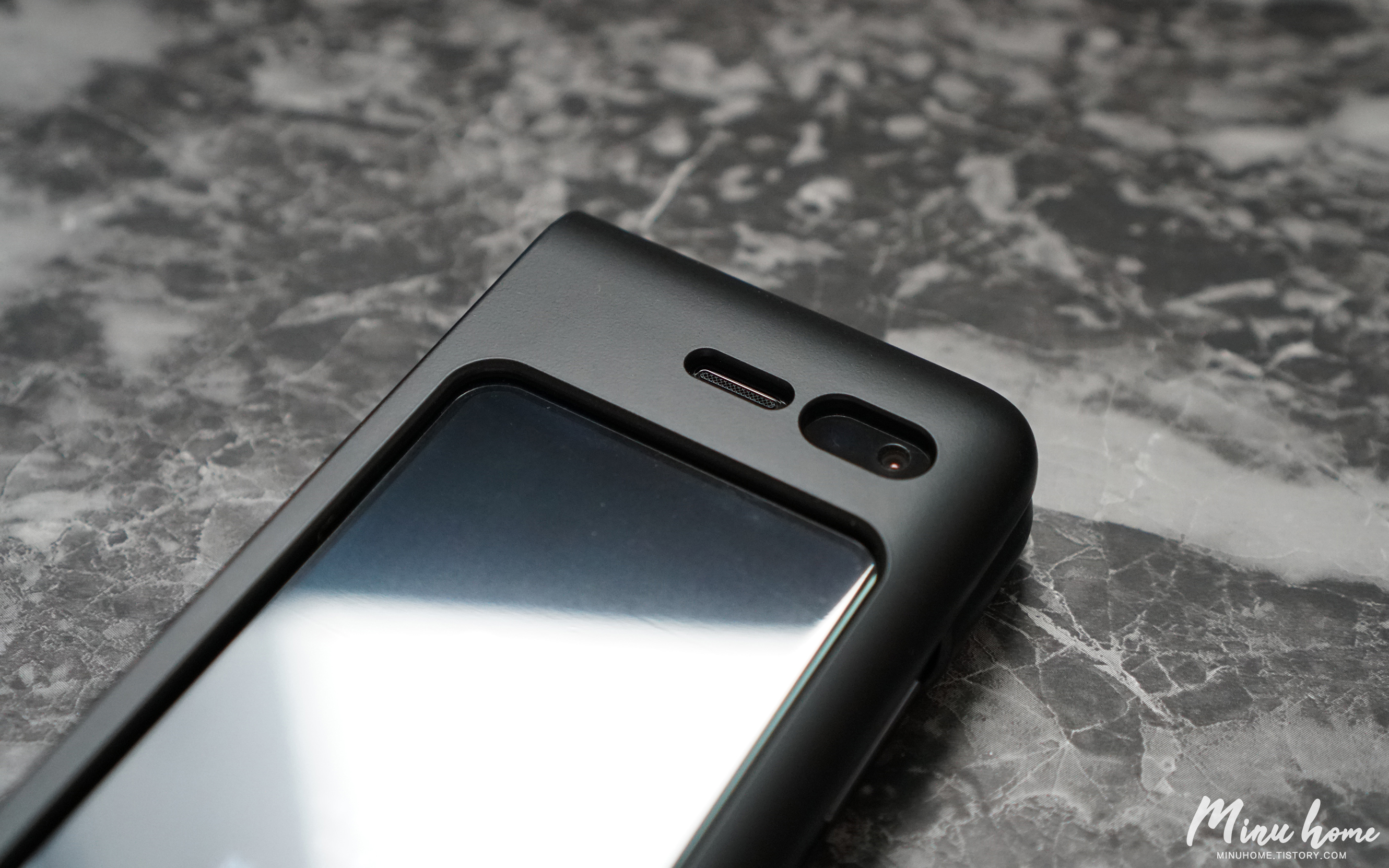 리시버와 카메라 부분은 뚫려있으며 재질은 플라스틱이지만 미끄럽지않게 코팅처리가 되어있습니다.