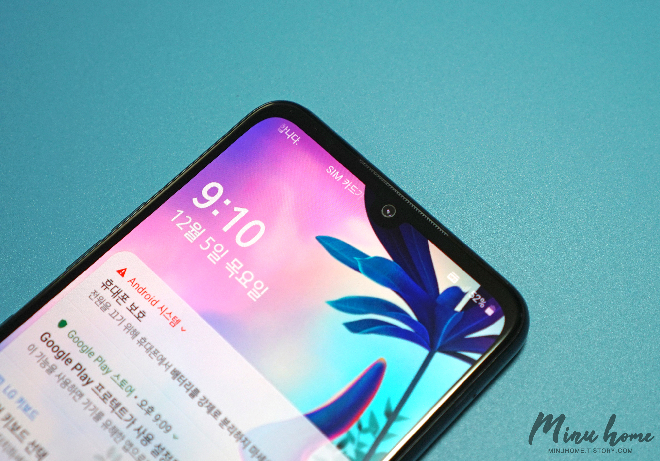 상단에는 U 모양의 물방울 노치 형태를 가지고 있으며, 불필요한 요소를 제외한 카메라만 자리 잡고 있는 점을 볼 수 있습니다.