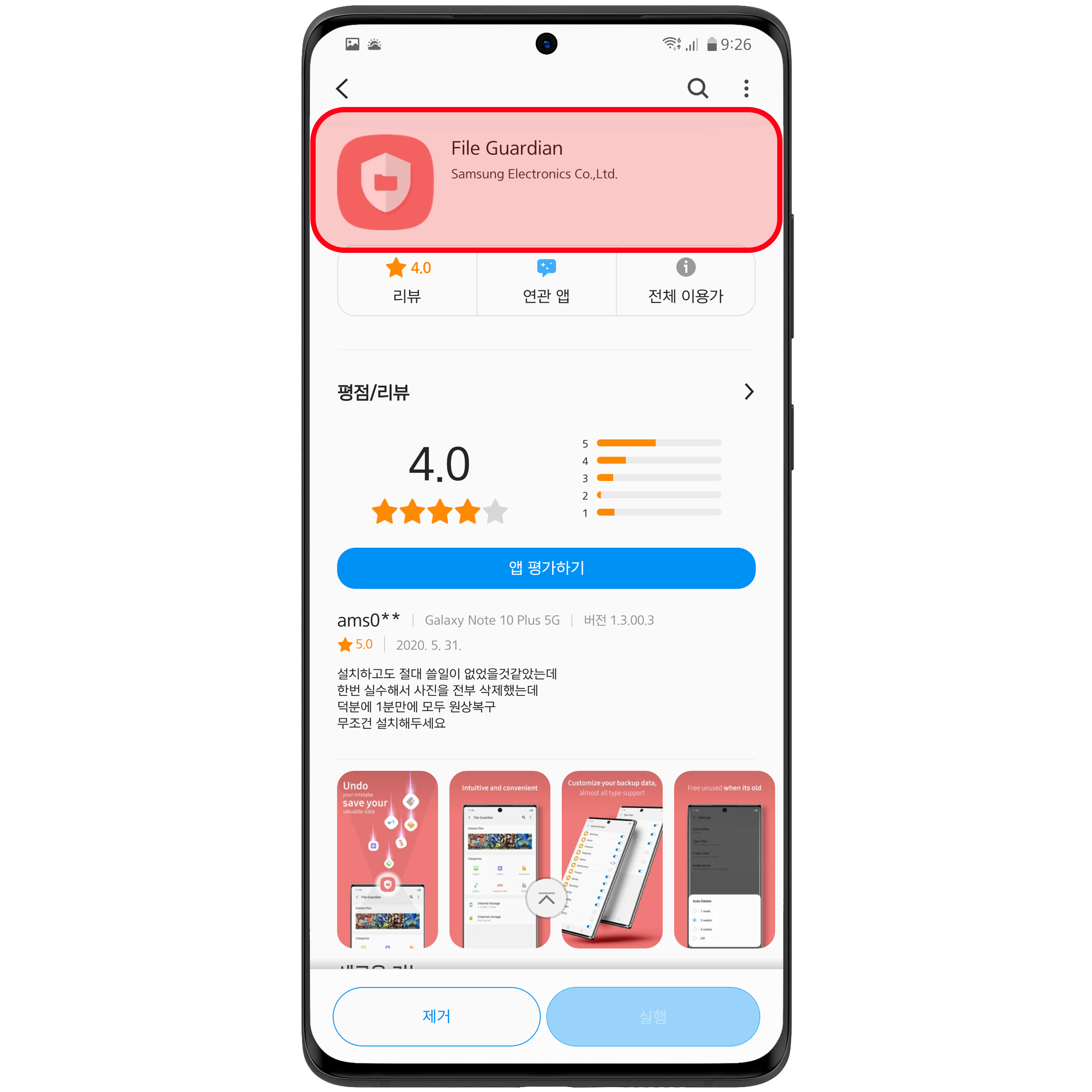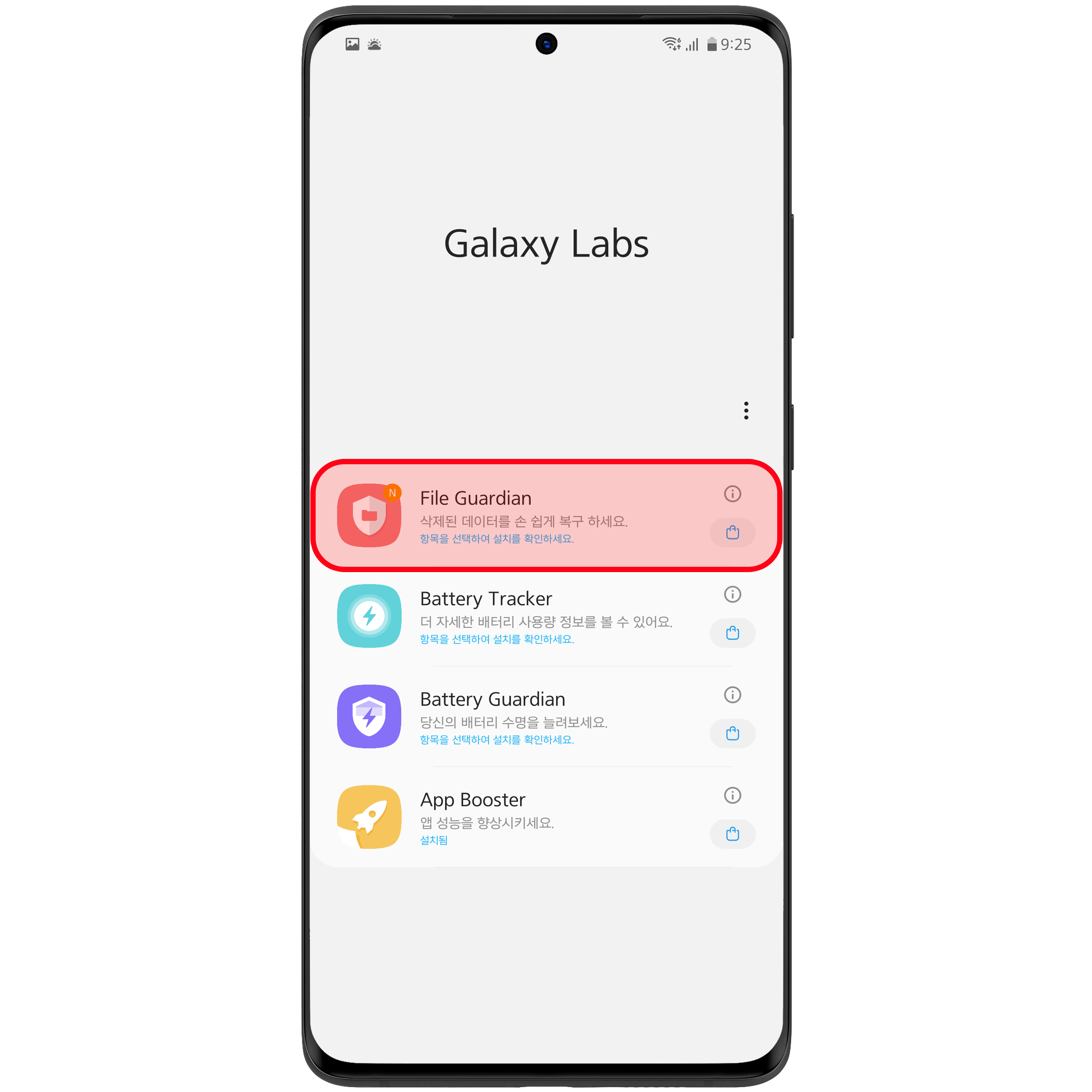 갤럭시 랩스 앱을 다운받아 파일 가디언 앱을 사용해보세요.