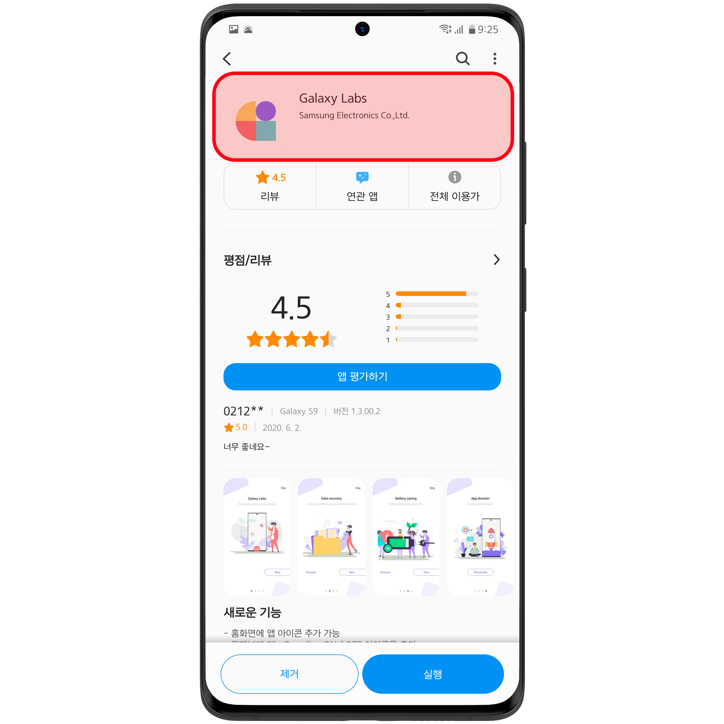 삼성 갤럭시 스토어를 통해 "Galaxy Labs"를 검색하신 후 앱을 다운로드 합니다.