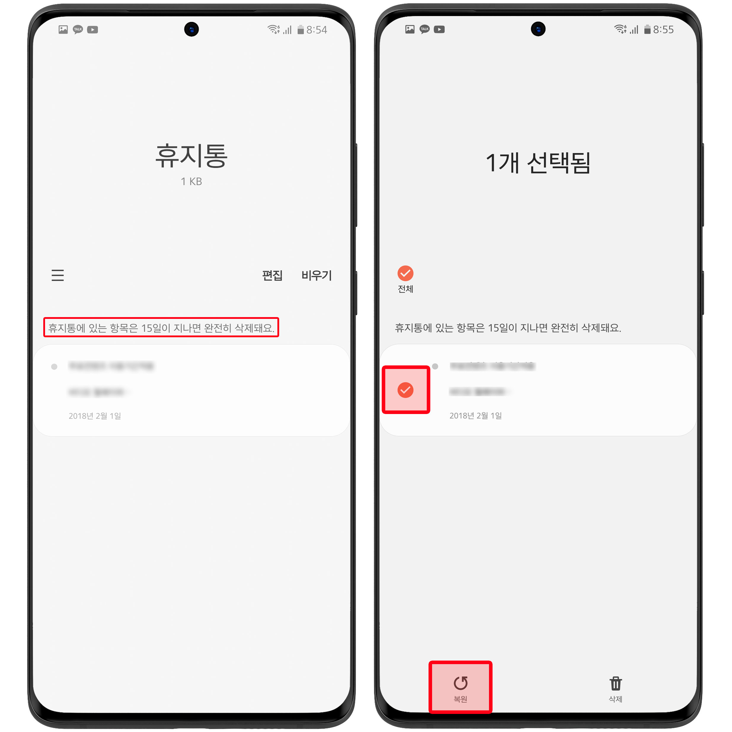 중요한 정보와 기록을 항상 백업하는것도 중요하지만, 실수로 삭제하는것을 휴지통 기능을 통해 미리 방지하시기 바랍니다.