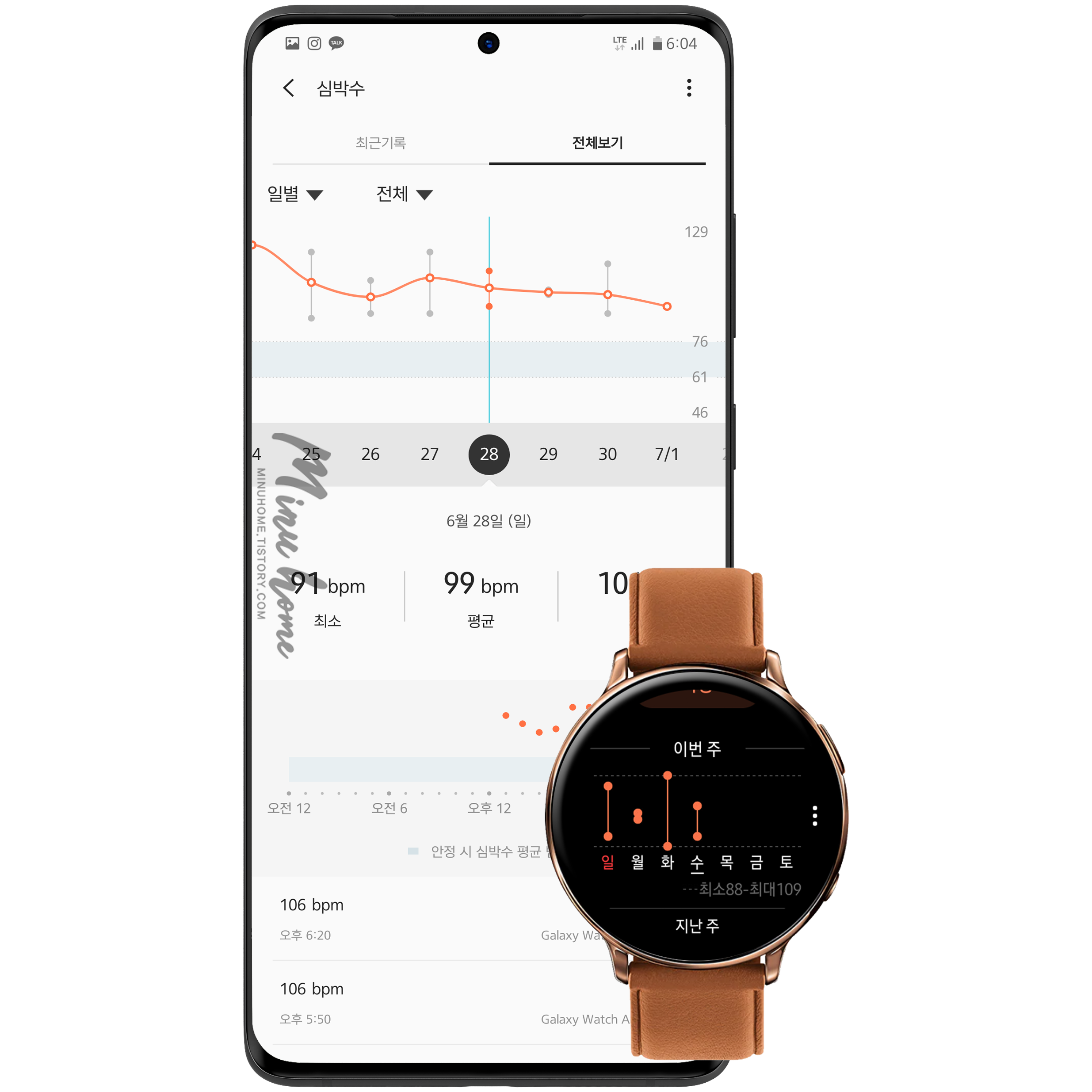 갤럭시 워치 액티브2를 통해 측정된 값은 삼성 헬스를 통해 연동되어 기록이 됩니다.