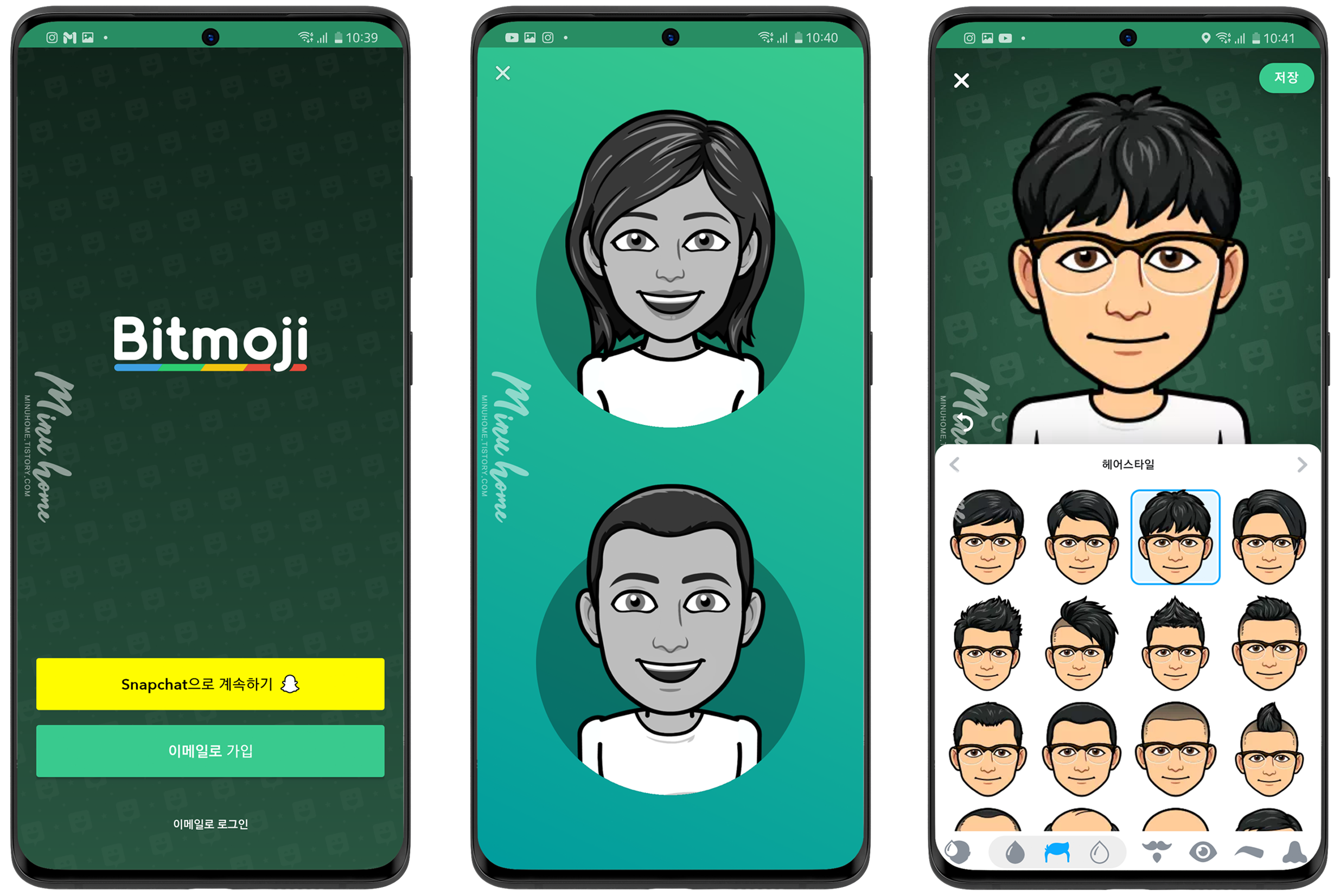 피부색 부터 헤어스타일 그리고 섬세하게 눈섭모양 등 다양한 커스텀편집이 가능하기 때문에 최대한 나의 캐릭터와 비슷한 Bitmoji를 생성해보세요.