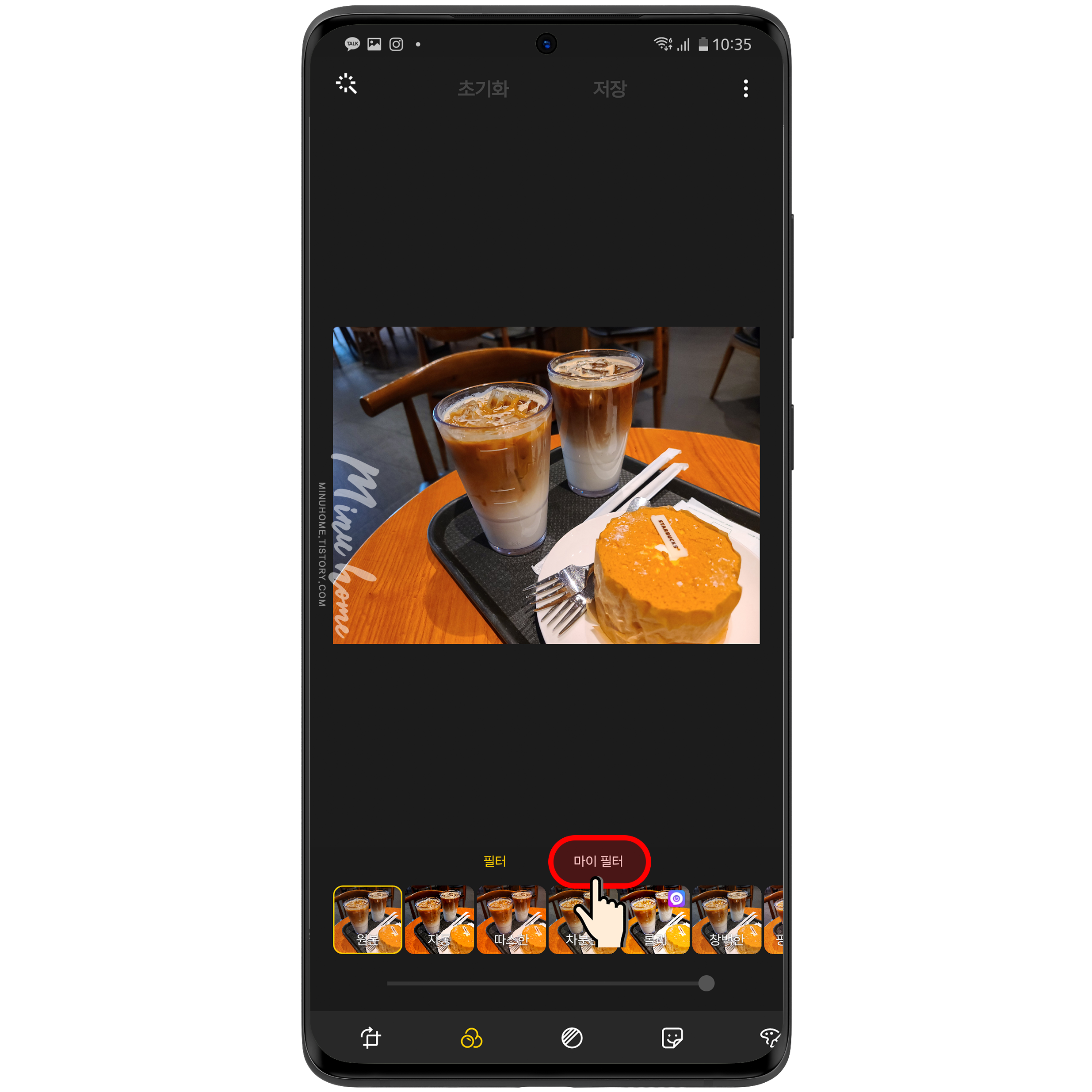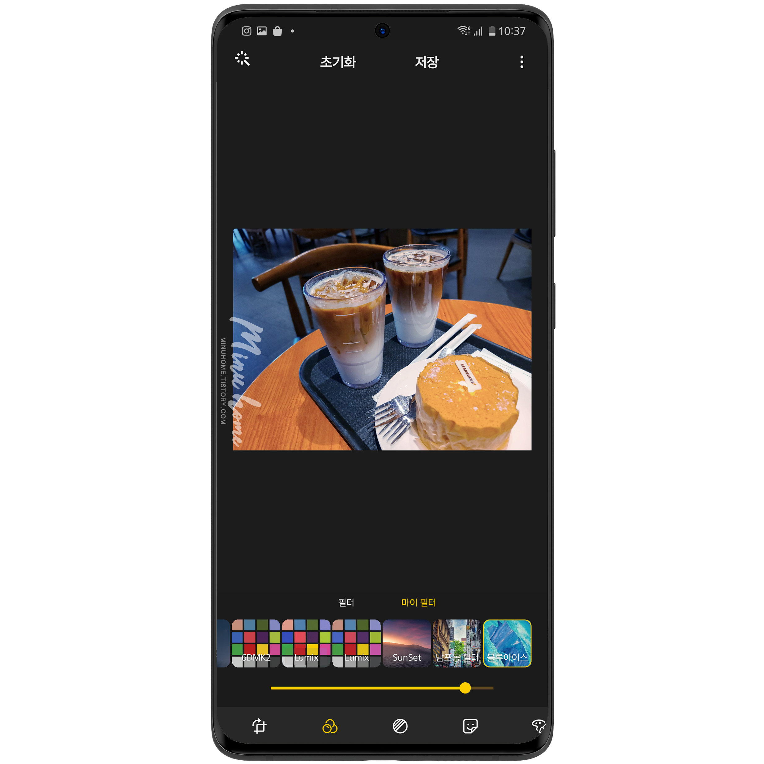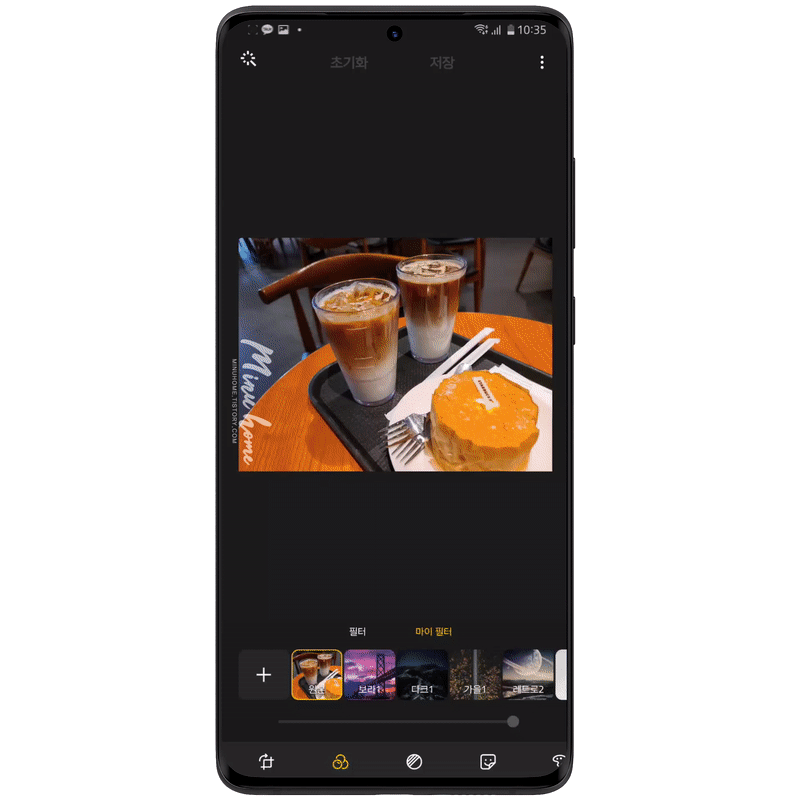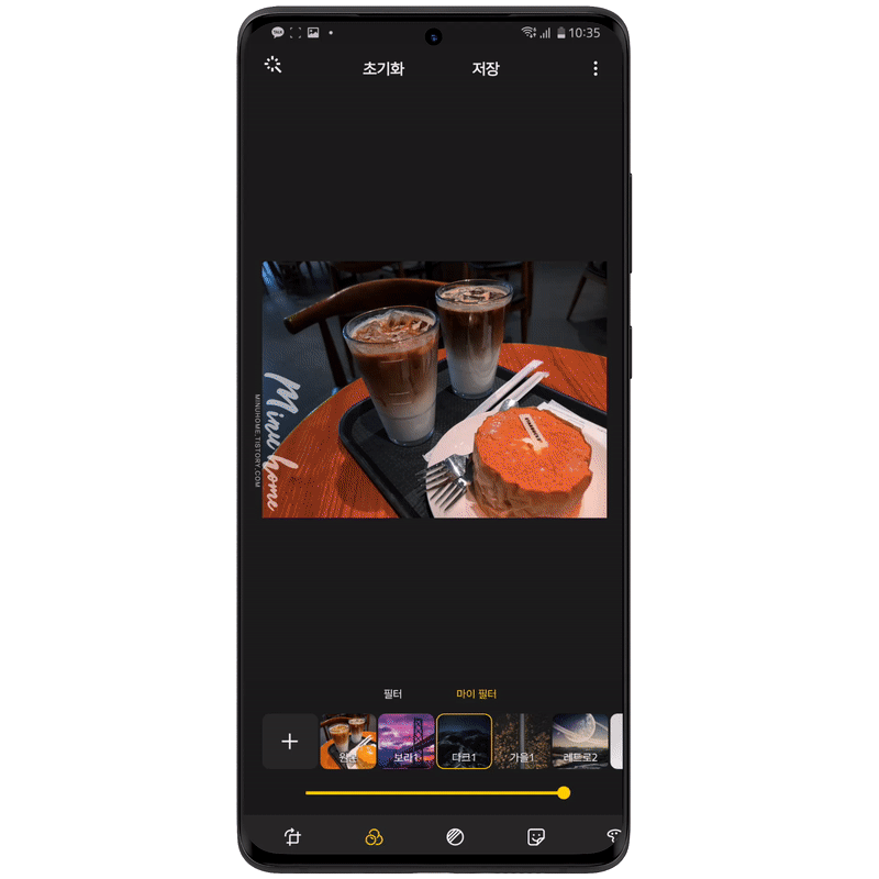 마이필터에 기존에 저장해둔 필터 항목을 보면서 촬영해둔 사진에 나만의 필터를 적용하여 색감을 조절할 수 있습니다.