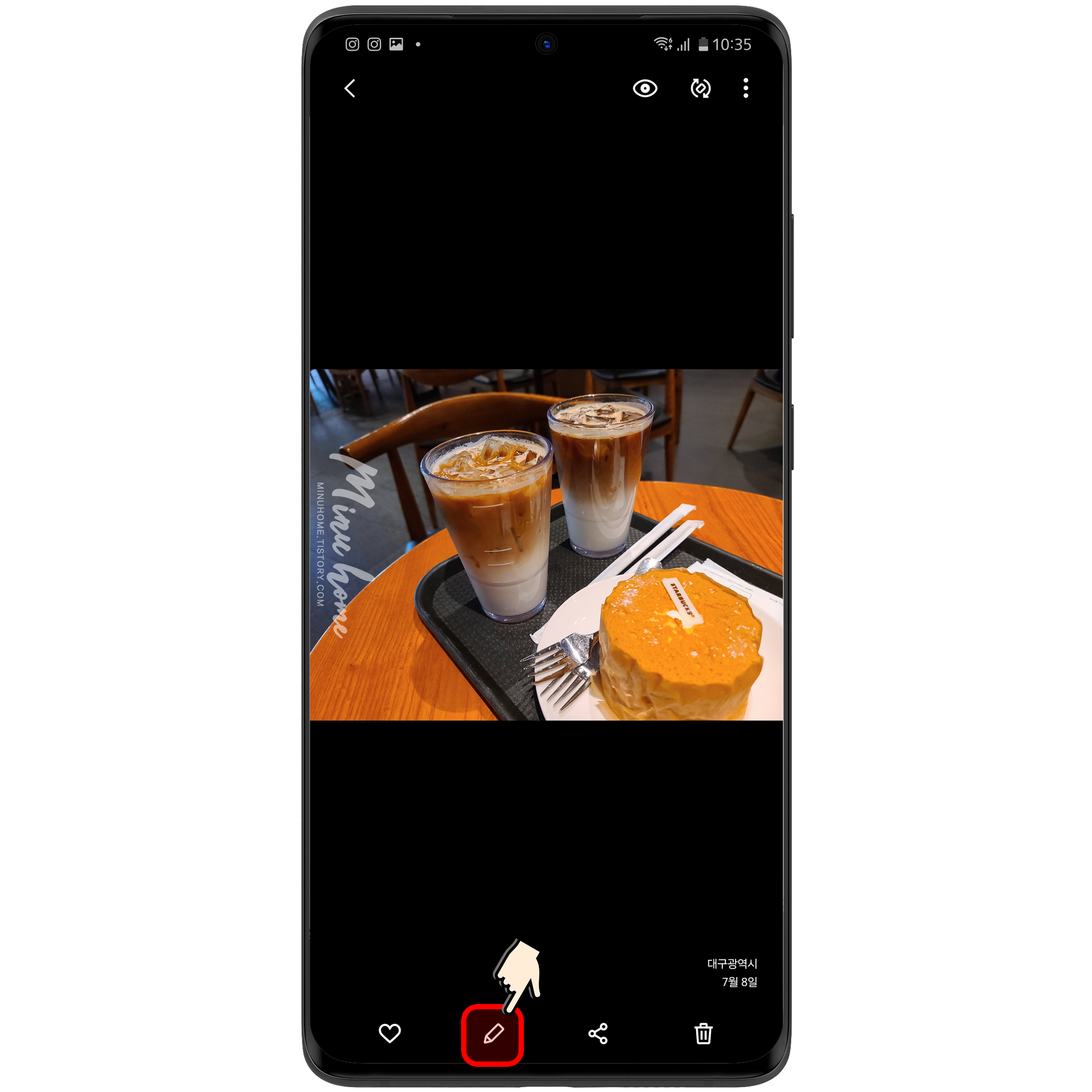 포토 에디터앱은 별도의 APP 아이콘이 없어서 진입하실 때 편집할 이미지의 하단에 표시되는 편집(연필)모양을 눌러서 포토 에디터 메뉴로 진입해줍니다.