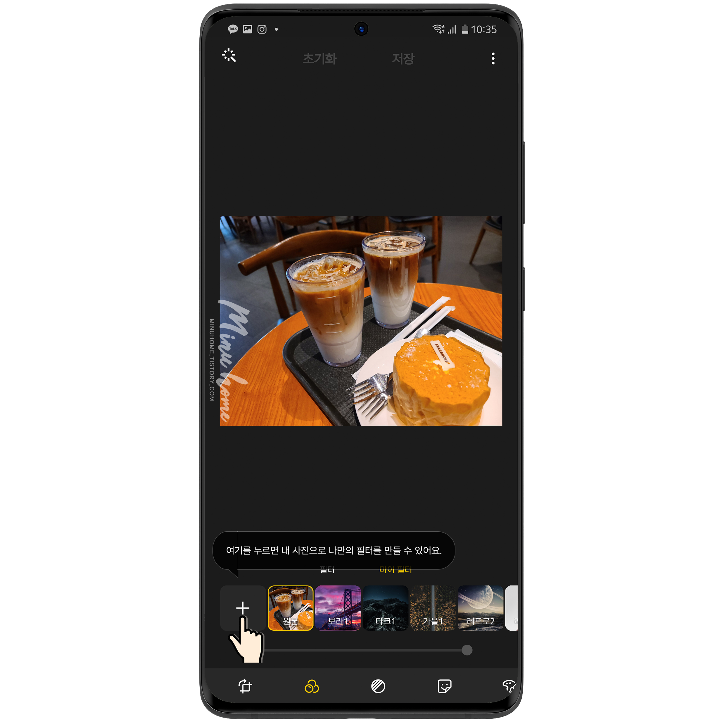 또한 + 모양을 눌러서 나만의 필터를 만들 수 있습니다. 카메라에서 사용하던 필터 만들기와 방식은 동일합니다.