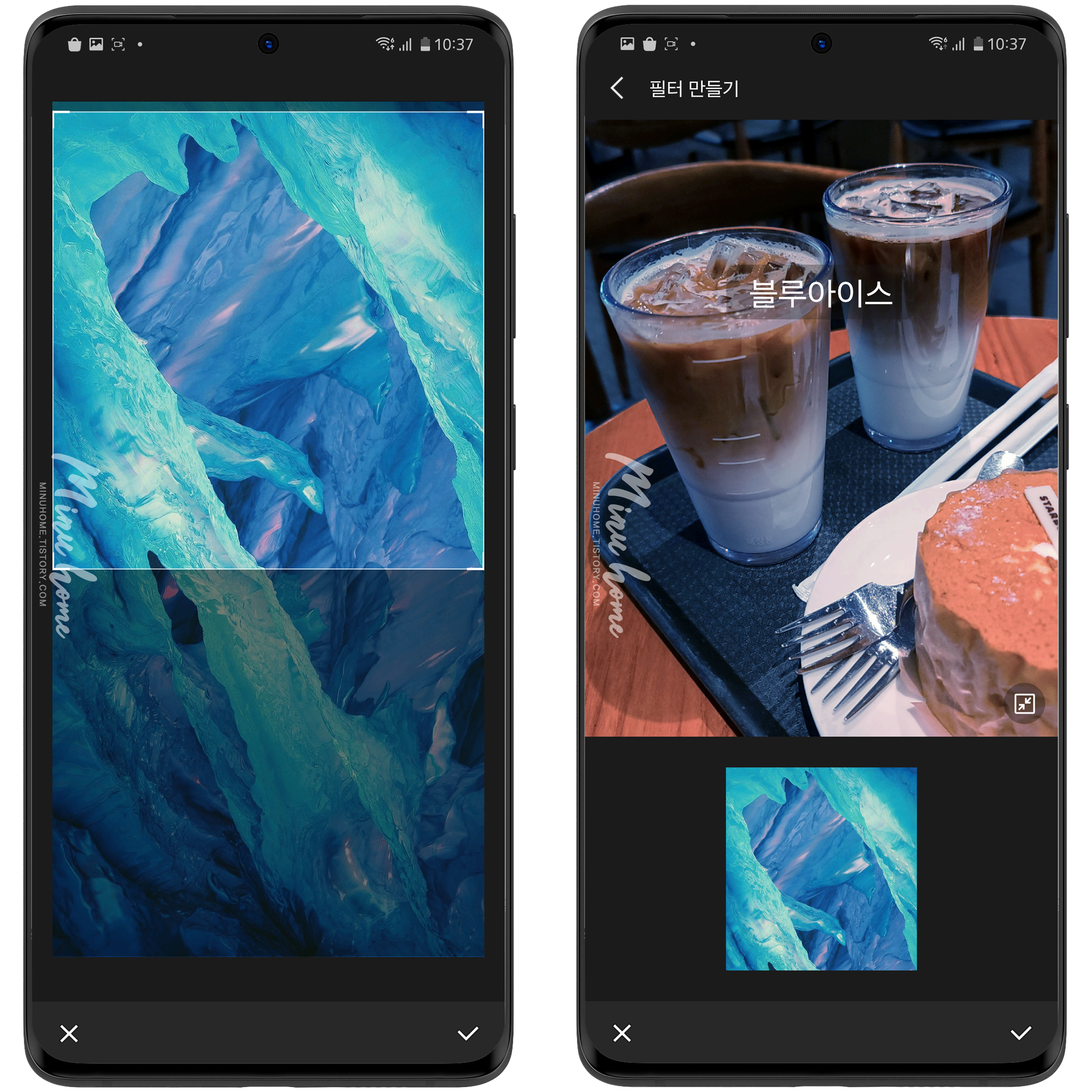 카메라 앱을 통해 마이필터를 적용하여 촬영은 가능했지만, 편집앱을 이용하여 마이필터를 적용하는 기능은 없었습니다.