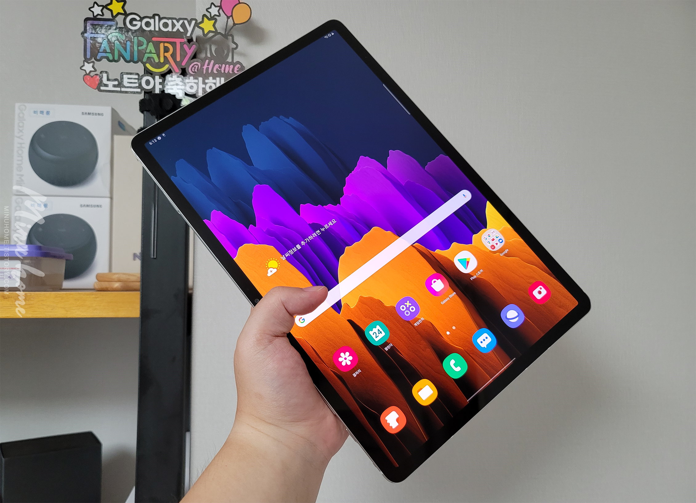 갤럭시탭 S7 플러스를 살펴보았습니다, 갤럭시 탭S6 쓸때는 화면이 조금만 더 컸으면 좋겠다 싶어서 12인치를 구매했는데 아직 적응단계이다 보니 큼직합니다.