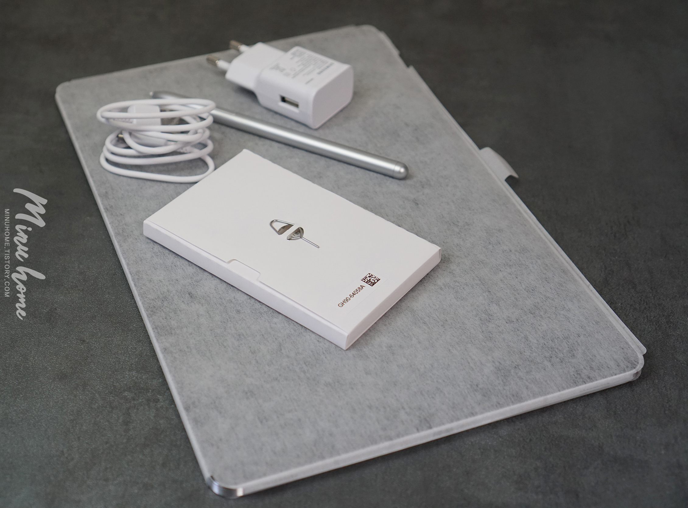 갤럭시 탭S7 플러스의 구성품은 충전기 / 충전케이블 A To C / S펜 / 사용설명서와 유심핀 으로 구성되어 있습니다.