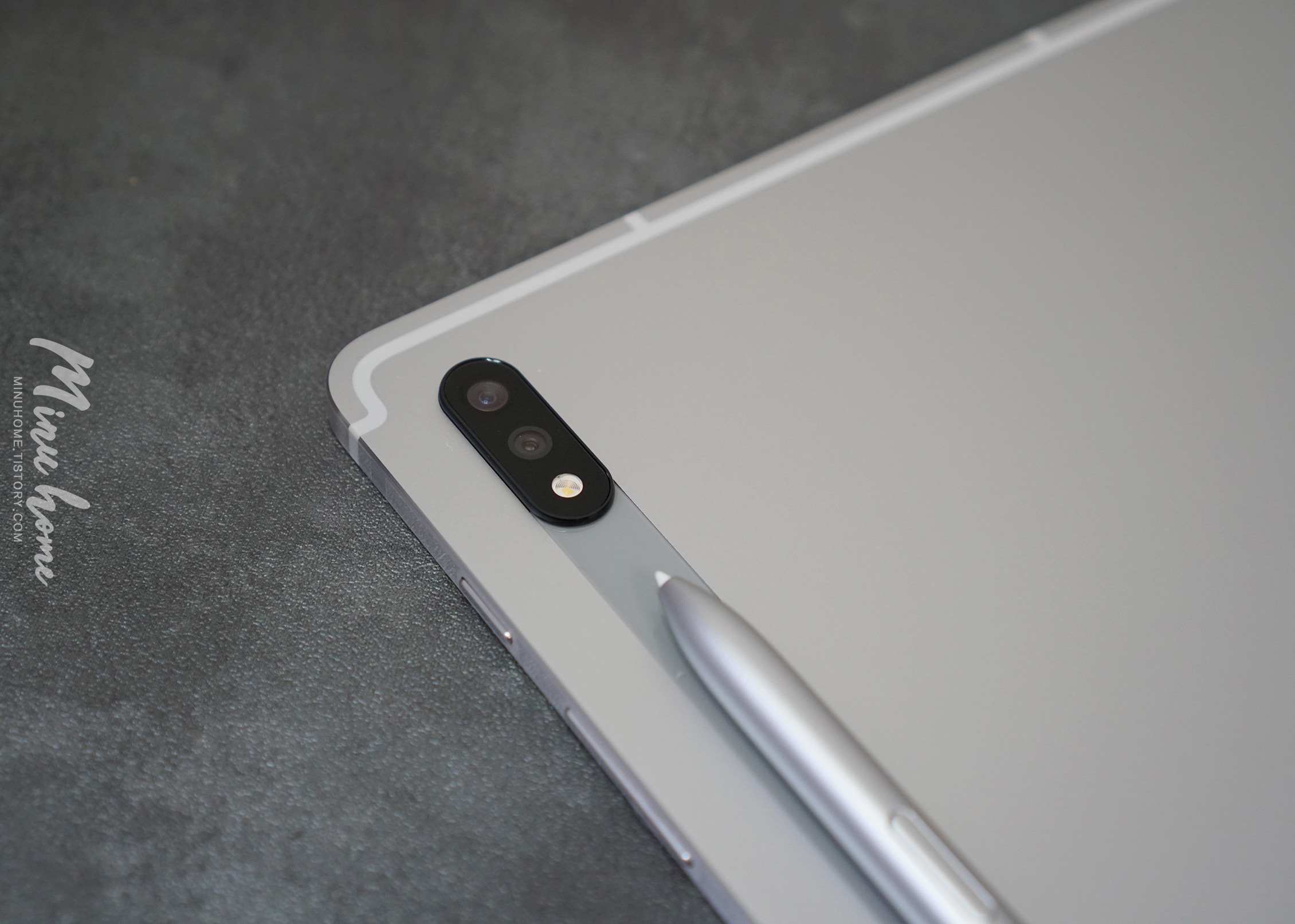 갤럭시 탭 S7 플러스의 후면 카메라는 듀얼 카메라를 가지고 있습니다.
