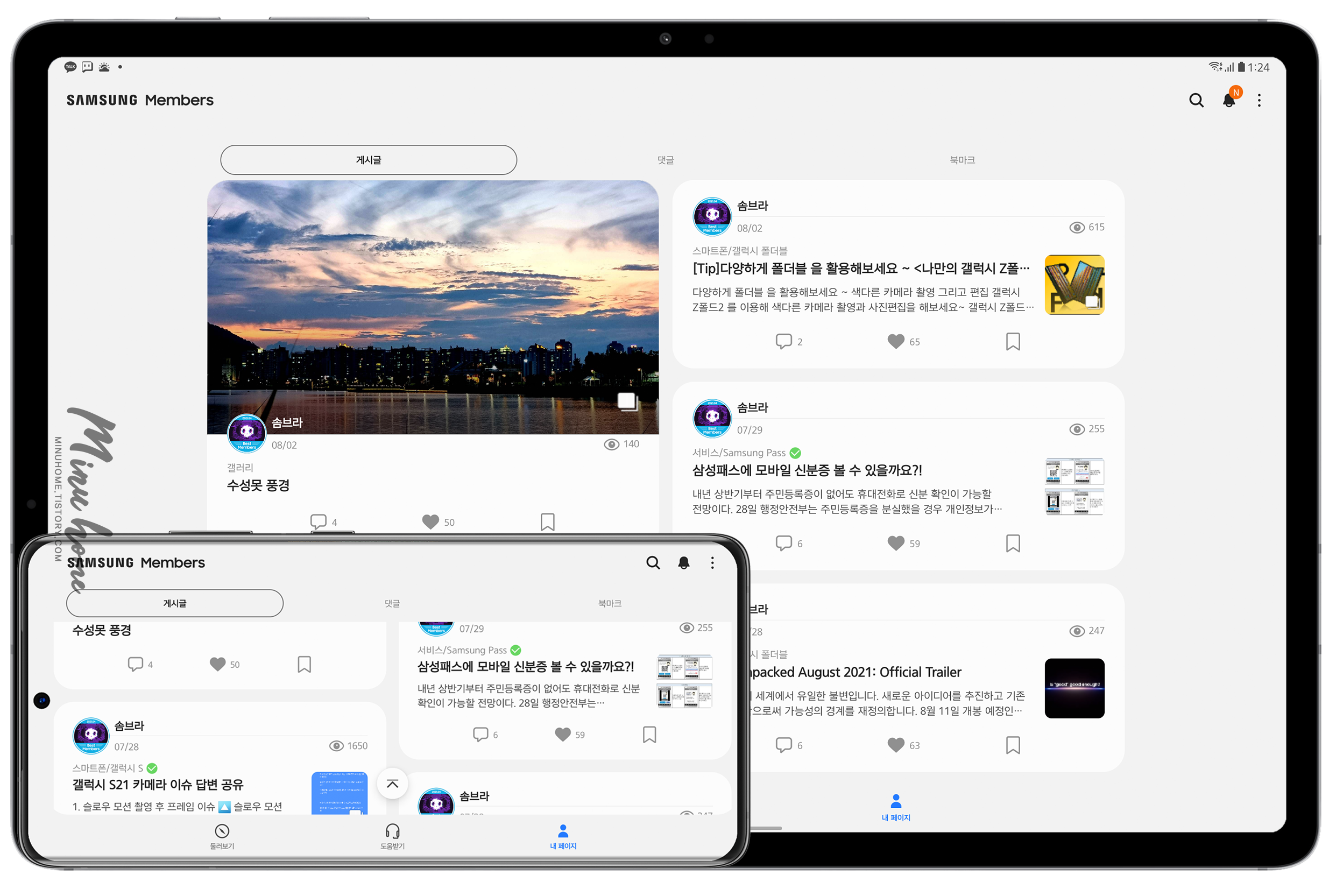 삼성멤버스 커뮤니티 게시판 그리고 메인 화면은 아직 해당 레이아웃으로 적용하지 않았지만