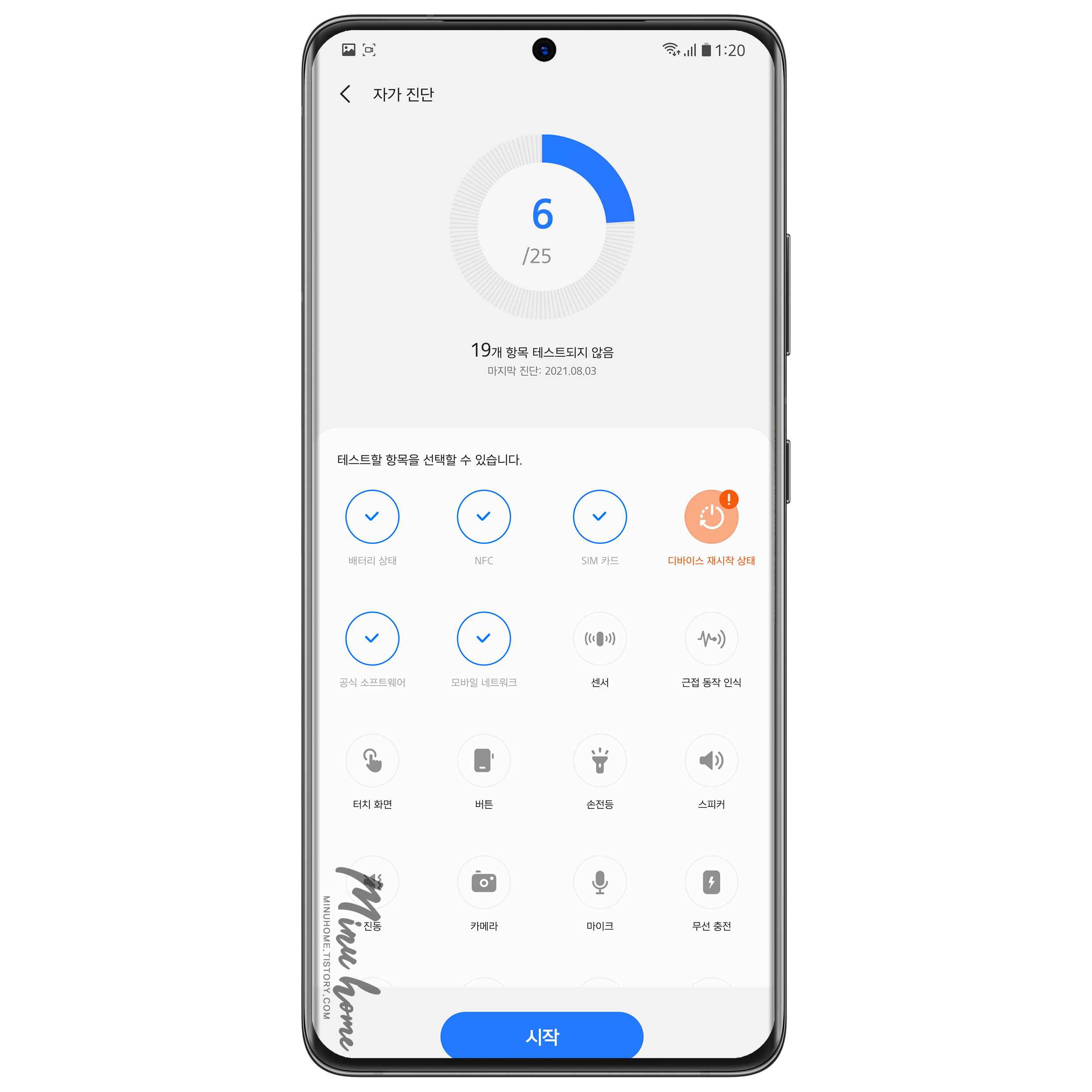 기기 진단 시 미진단 혹은 문제가 있는 영역은 ! 표시로 안내가 진행되며, 해당 오류 내역을 기반으로 내 디바이스의 상태를 체크해볼 수 있습니다.