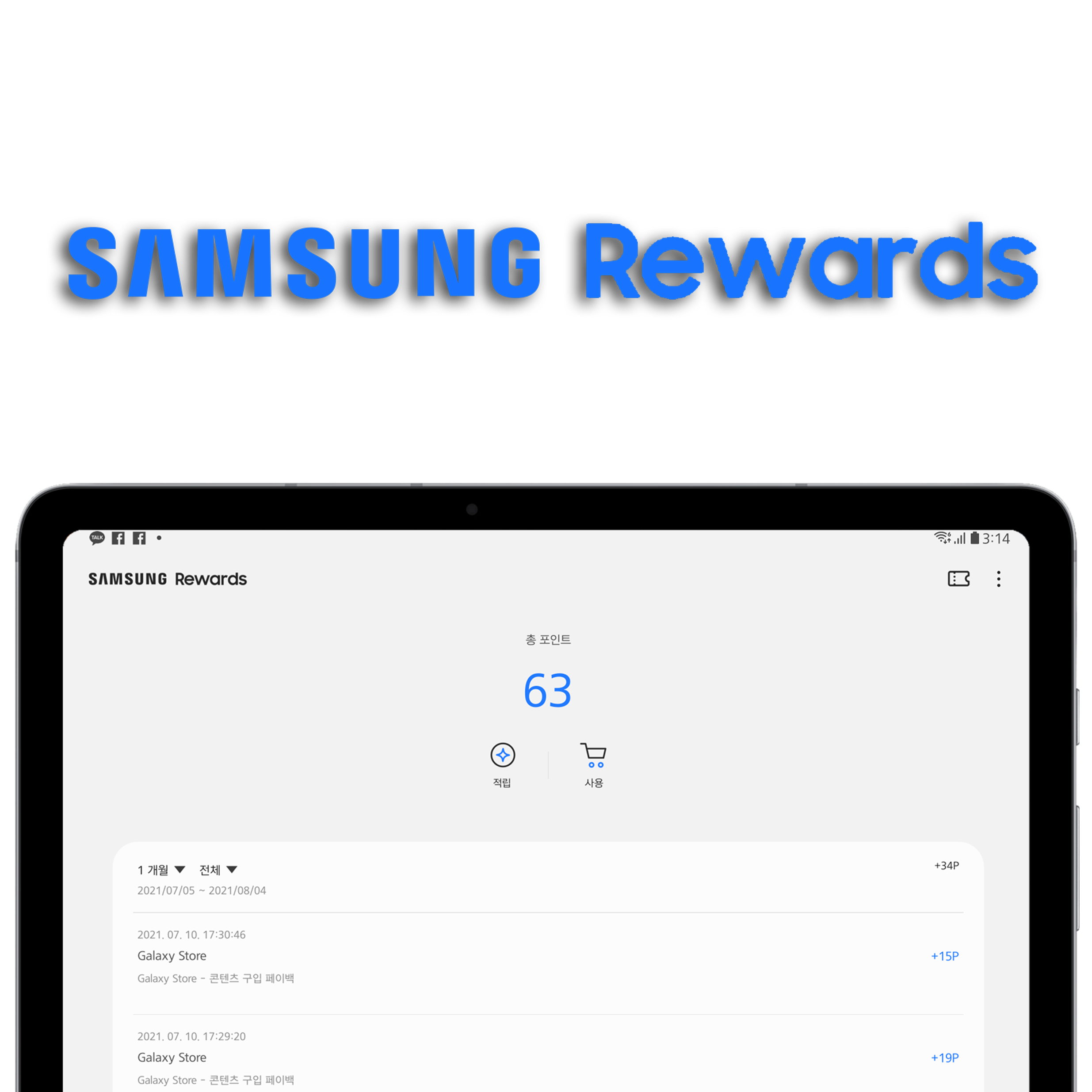 또한 태블릿에서 삼성리워즈를 사용할 수 있습니다. 태블릿에서 포인트 내역을 확인하고 적립 된 리워즈 포인트를 사용할 수 있습니다.