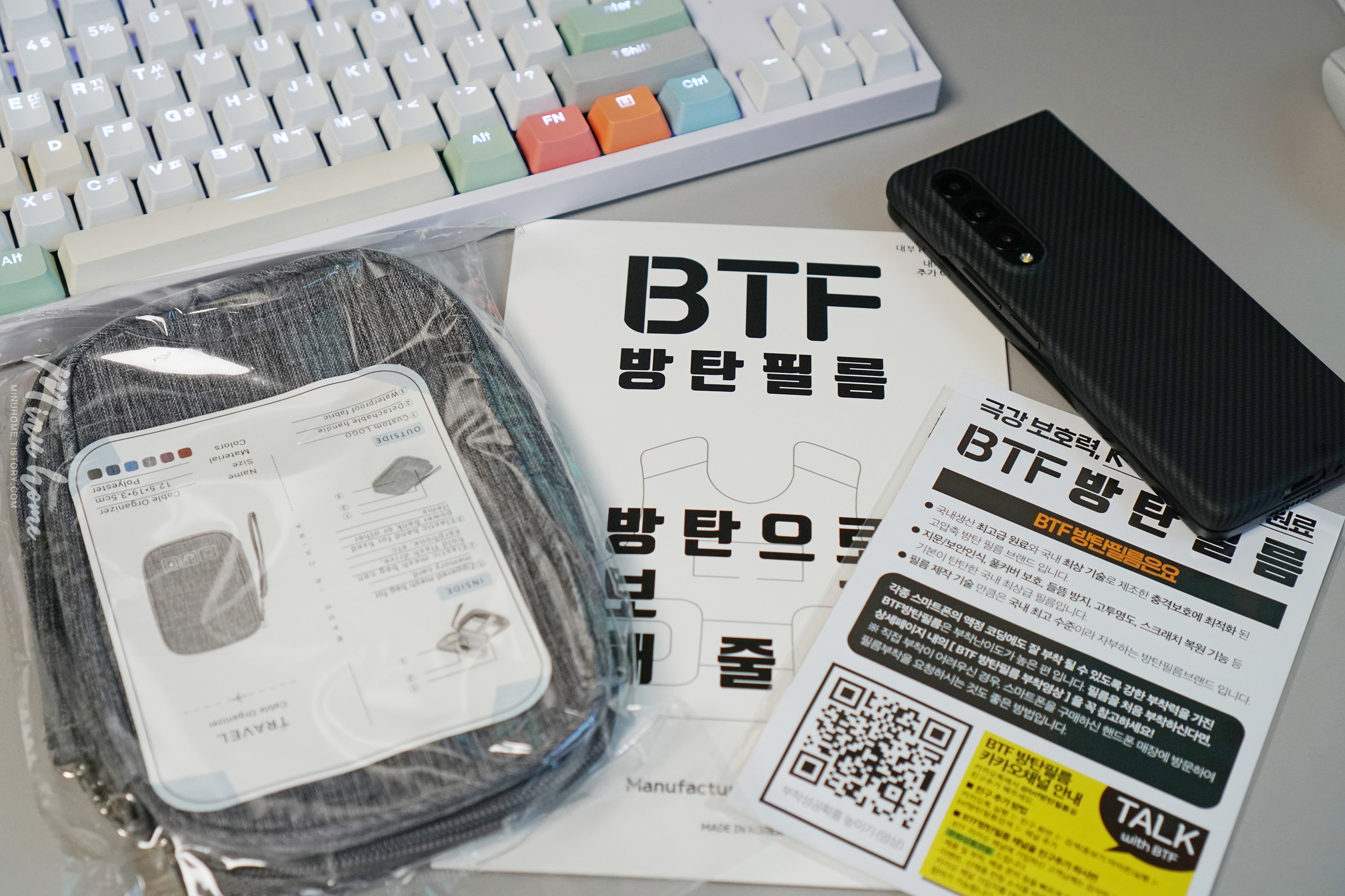 BTF 방탄필름은 이전에도 스마트폰과 워치에 사용을 해봤기 때문에 제품의 구성과 제품의 재질은 잘 알고 있어서 이번에는 갤럭시 Z폴드3의 전 후면 그리고 내부까지 모두 바꿔보았습니다.