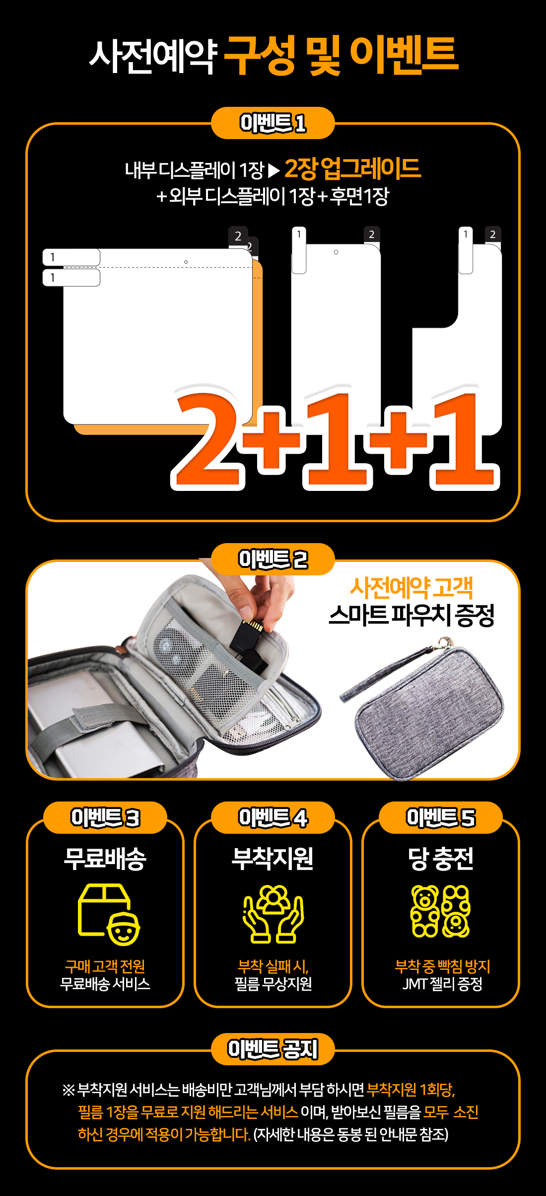 지금 BTF 방탄 필름을 구매하면 후면 보호필름 세트와 스마트파우치 증정 이벤트중 이니 구매 시 더주는 혜택도 받아가시기 바랍니다.