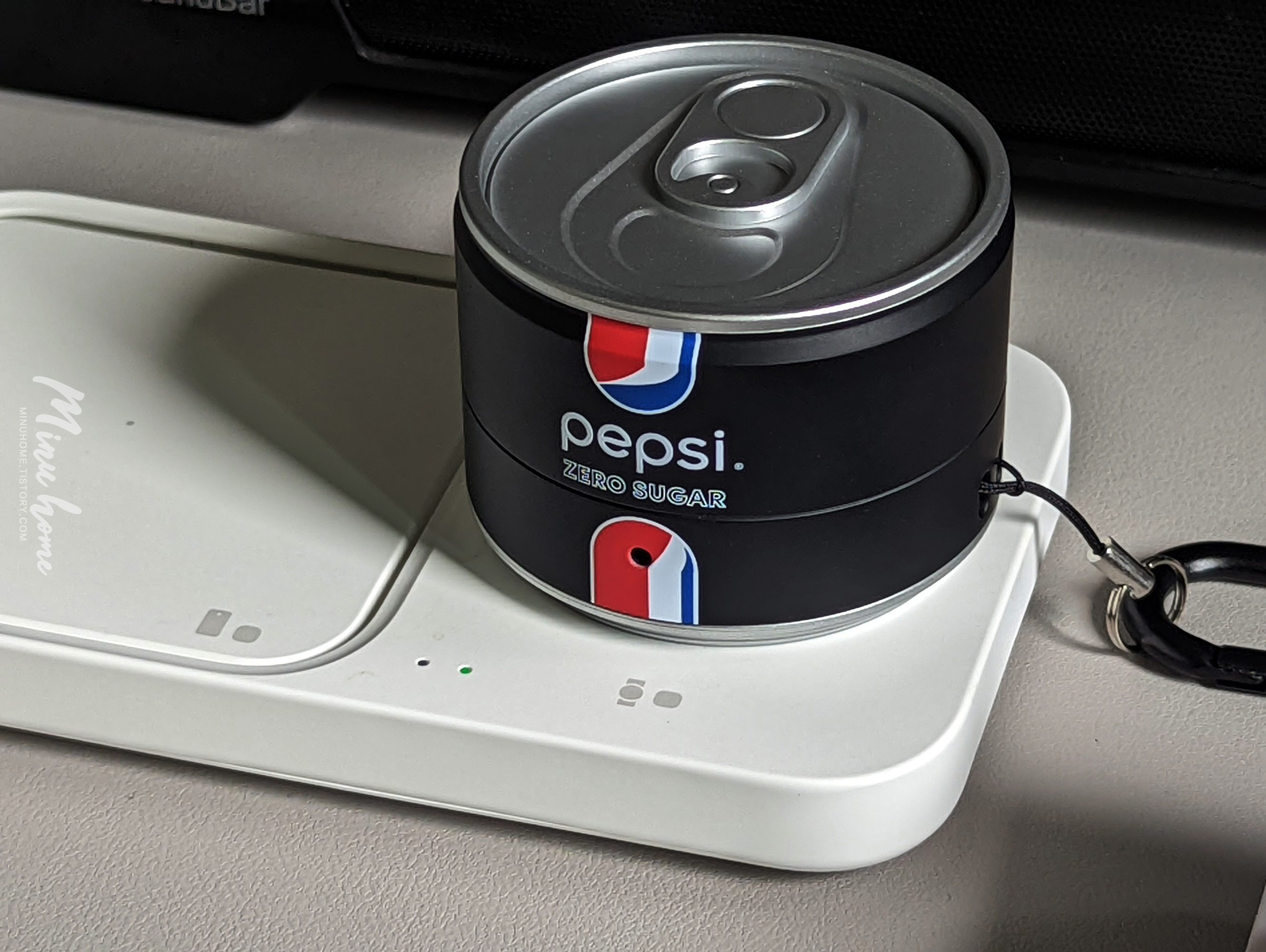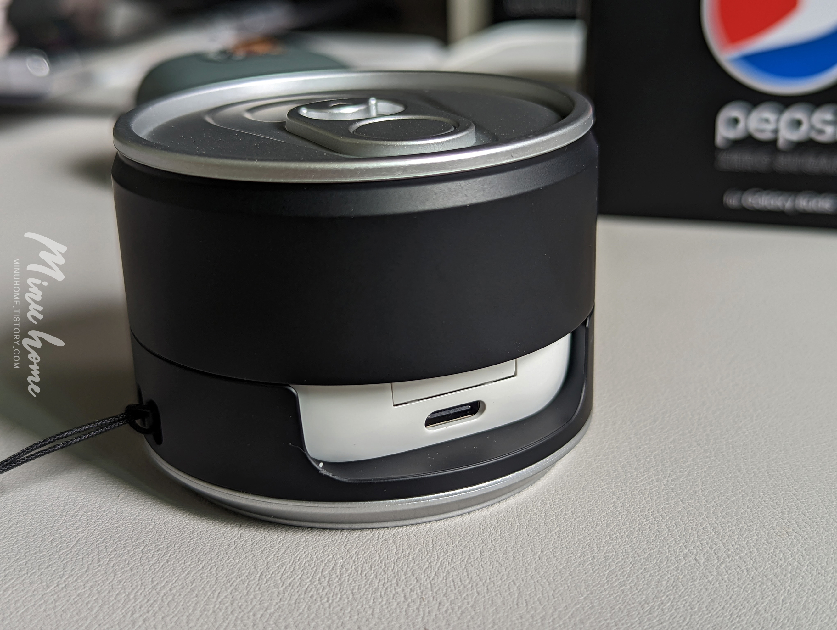 케이스를 착용하면 아주 미니미한 미니 뚱캔을 보는 느낌이 들었습니다. 위에서 바라봐도 캔이고 좌측에서 바라봐도 캔모양의 컨셉 ㅋㅋ 아주 취향 저격입니다.