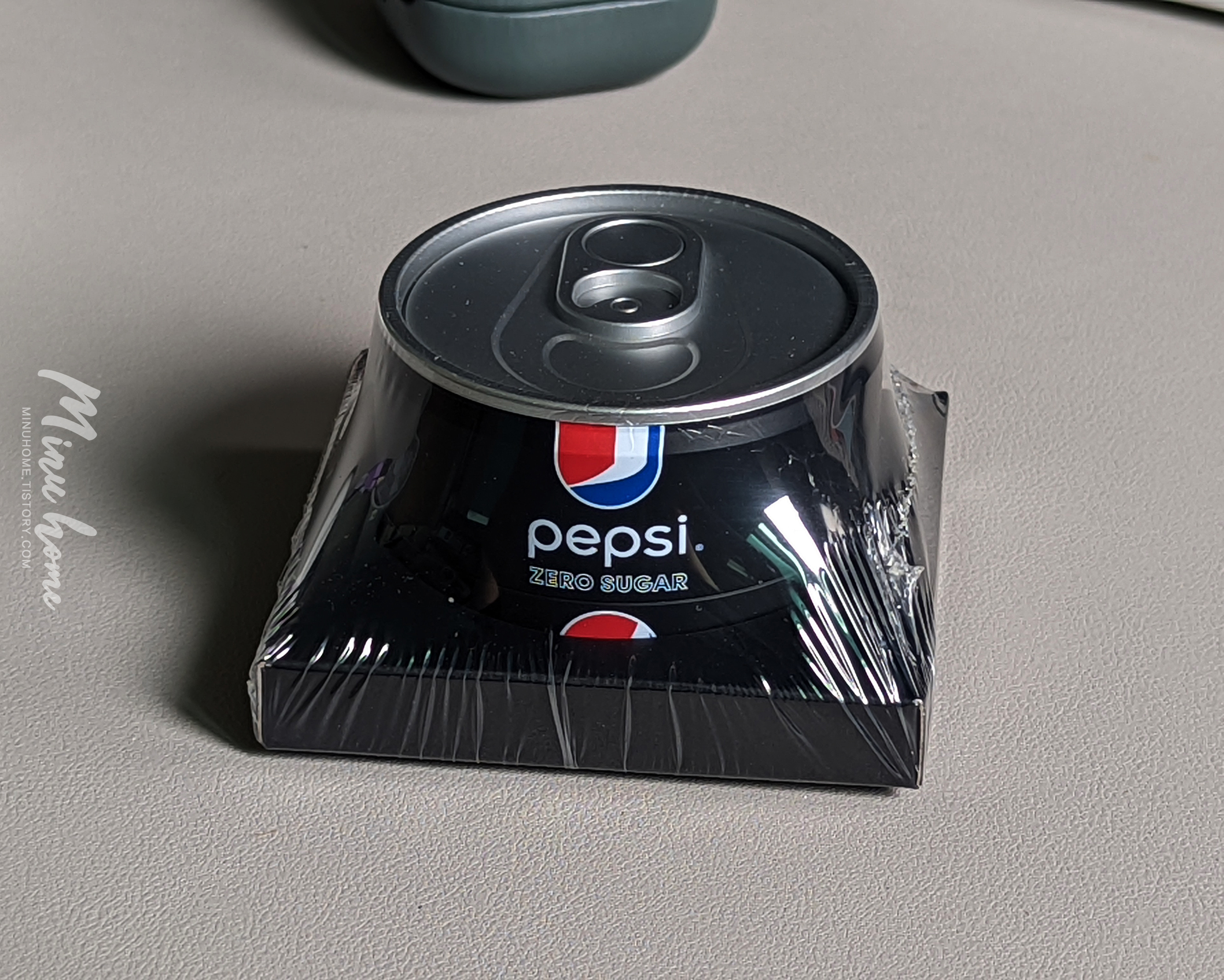 펩시 모양의 박스를 개봉하면 여기서 또 재미난 디테일이 보여집니다, 바로 케이스가 흔들리거나 빠지지 않도록 비닐랩으로 제품을 보관한 미개봉 제품이 나타납니다.