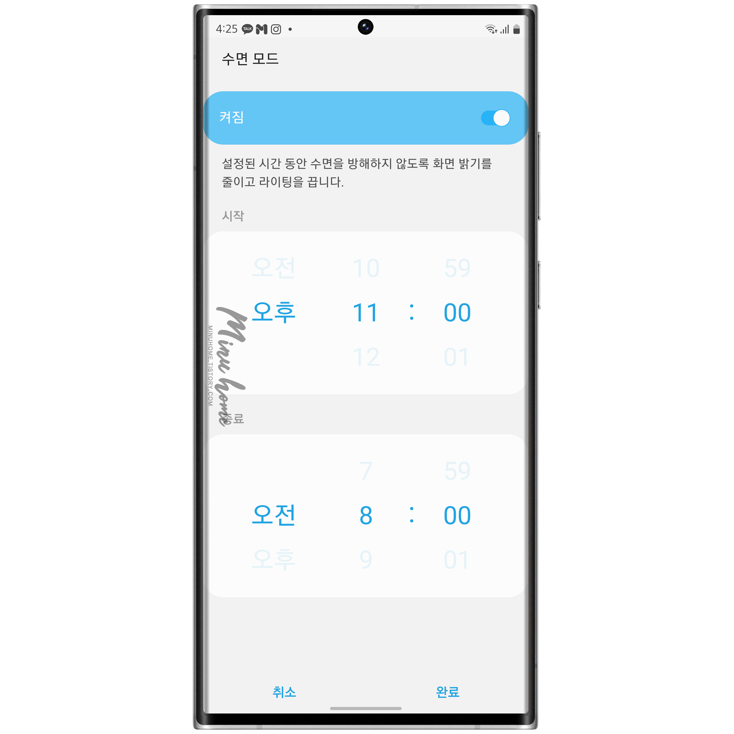 수면 모드를 미리 지정해서 수면 중 LED의 방해를 받지 않도록 설정해 주세요.