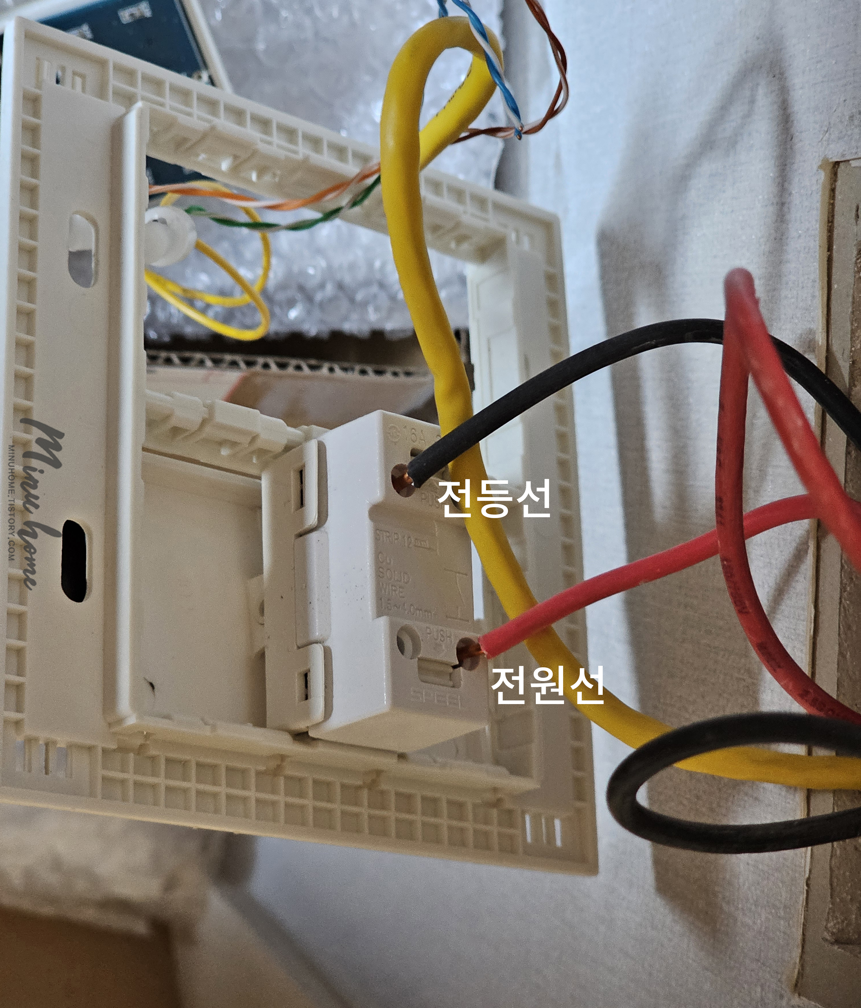 기본적으로 동봉된 전선이 없어 별도로 전선을 구매하여 COM과 S1의 전선을 연결해 스위치에 연결을 마무리해주고 전선을 깔끔하게 정리 후 분전함에 넣어 정리를 해줬습니다.