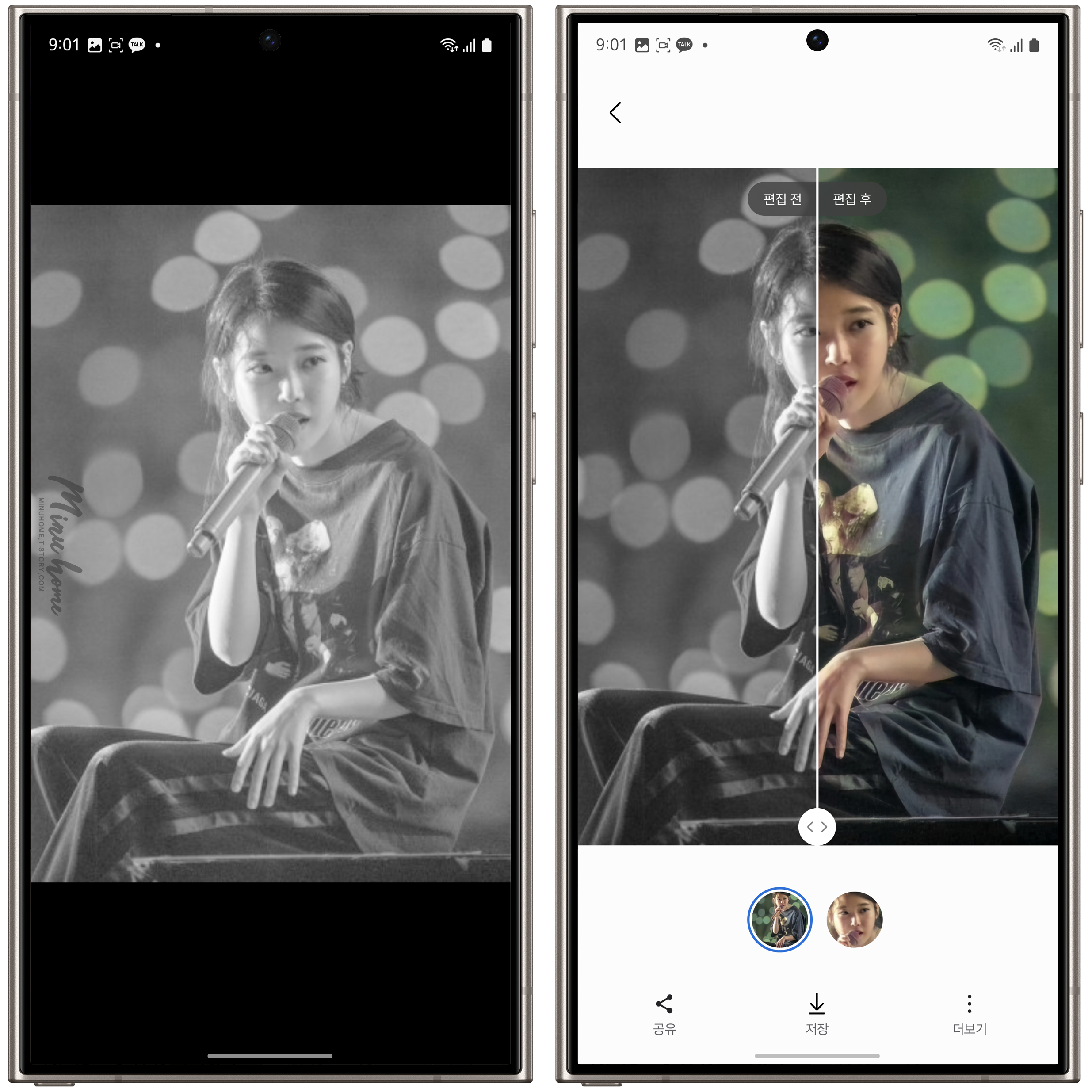 갤럭시 S24 시리즈(현시점 AI가 적용된 단말) 을 기준으로 흑백사진을 컬러사진으로 바꾸는 방법을 알려드리겠습니다.