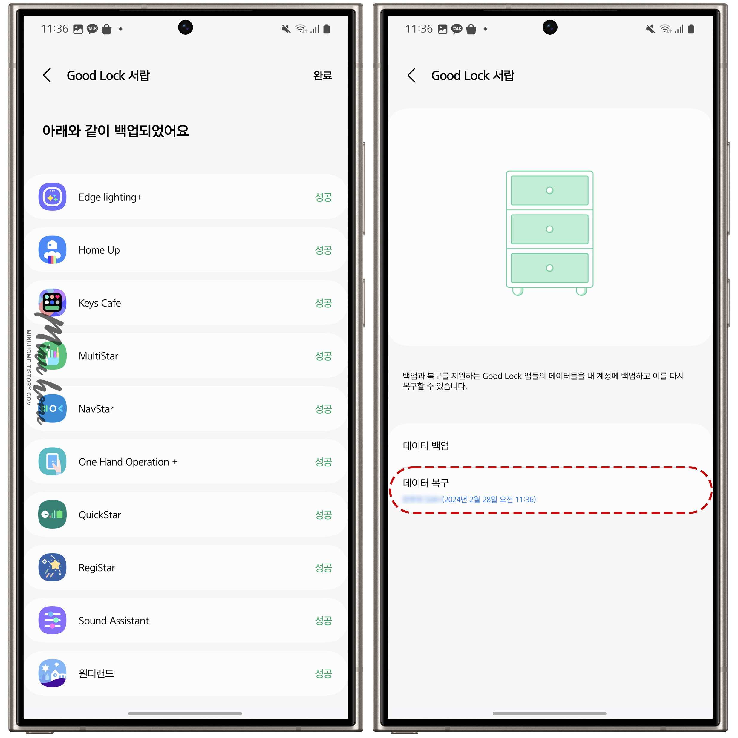 먼저 굿락 서랍의 경우 우리가 알고 있는 "백업/복원"의 원리로 내 삼성계정에 연동하여 데이터를 백업 복원을 진행합니다.