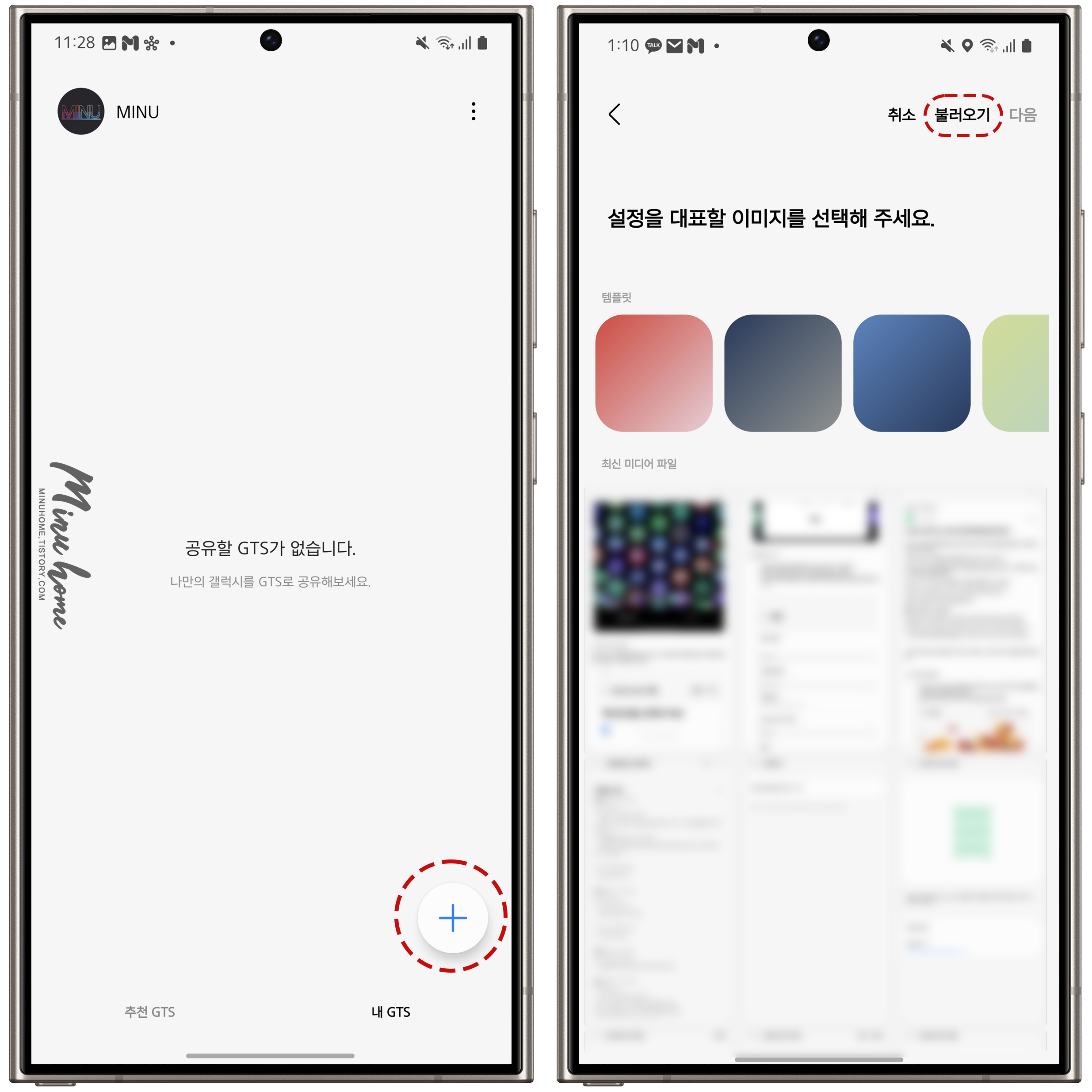 하단에 "+" 모양을 눌러줍니다. 그럼 내가 공유할 GTS의 썸네일을 제작하는 화면이 나옵니다.