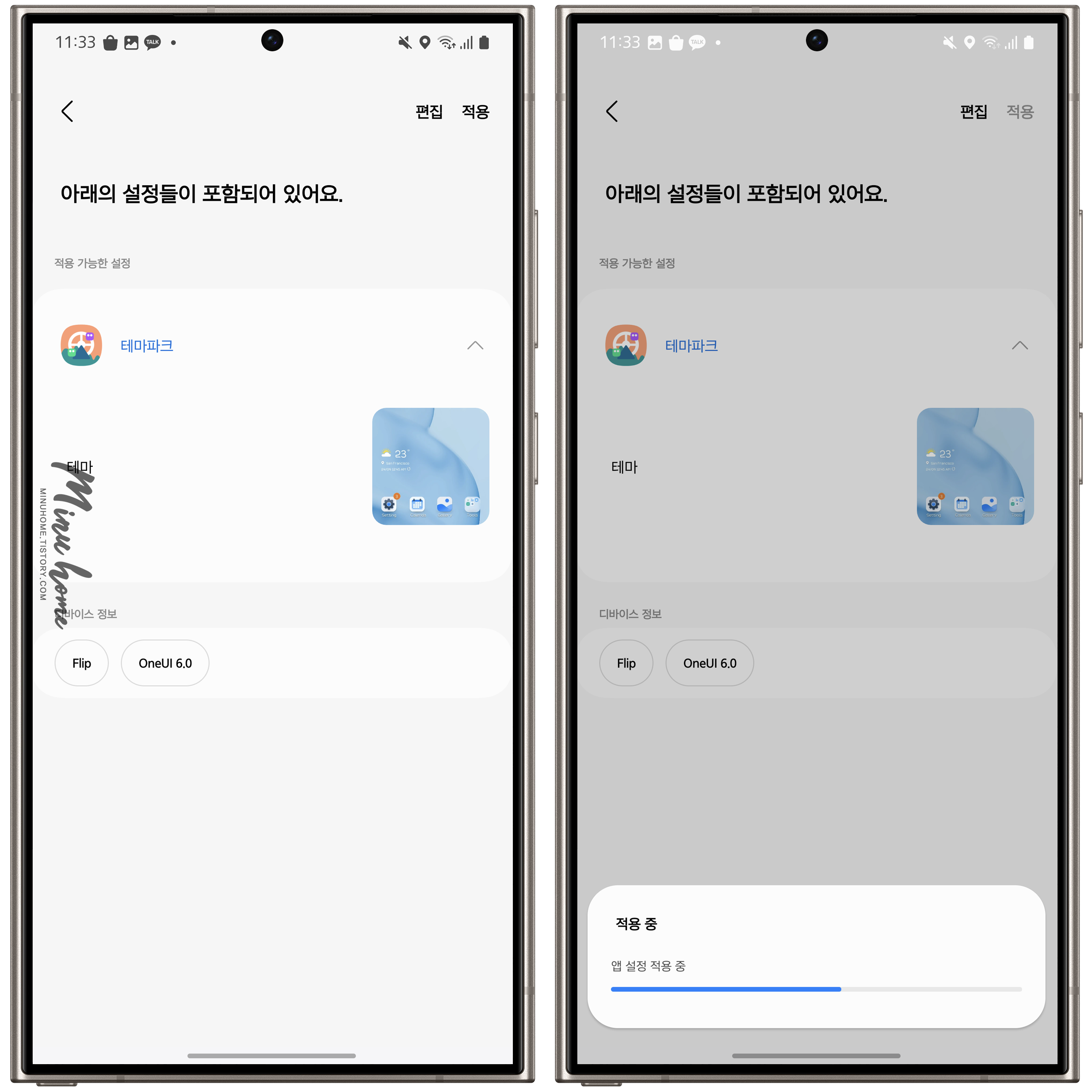 유현님께서 올려주신 테마를 한번 적용해보기 위해 "적용"을 눌러주면 콘텐츠를 다운로드하며 해당 콘텐츠 앱으로 이동하여 적용 및 편집 이 가능합니다.