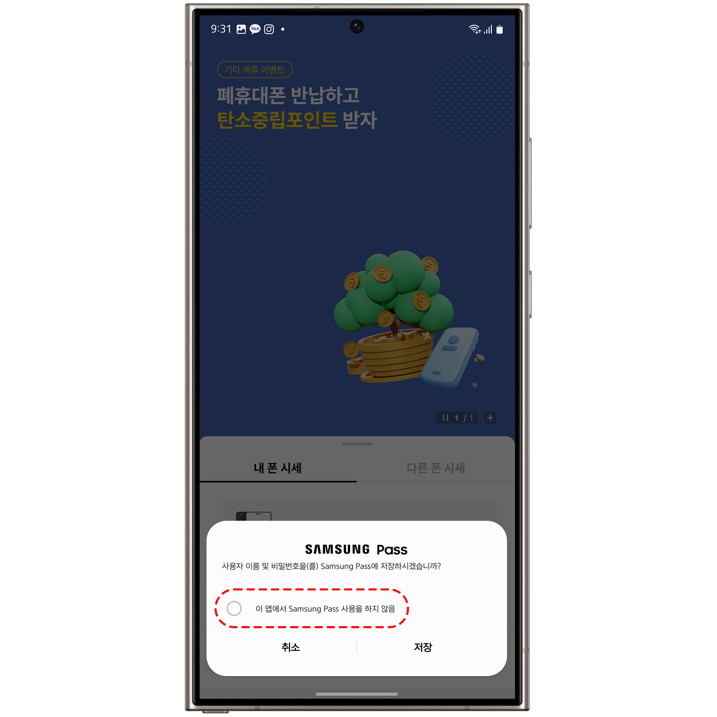 * Samsung Pass에 저장되는 정보는 Samsung Knox로 보호되어 외부로 유출되지 않습니다.