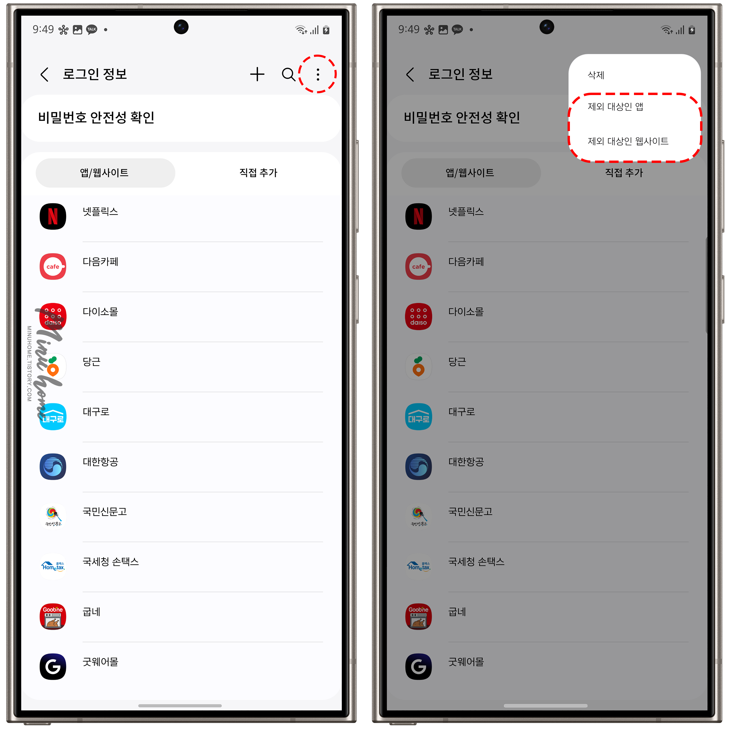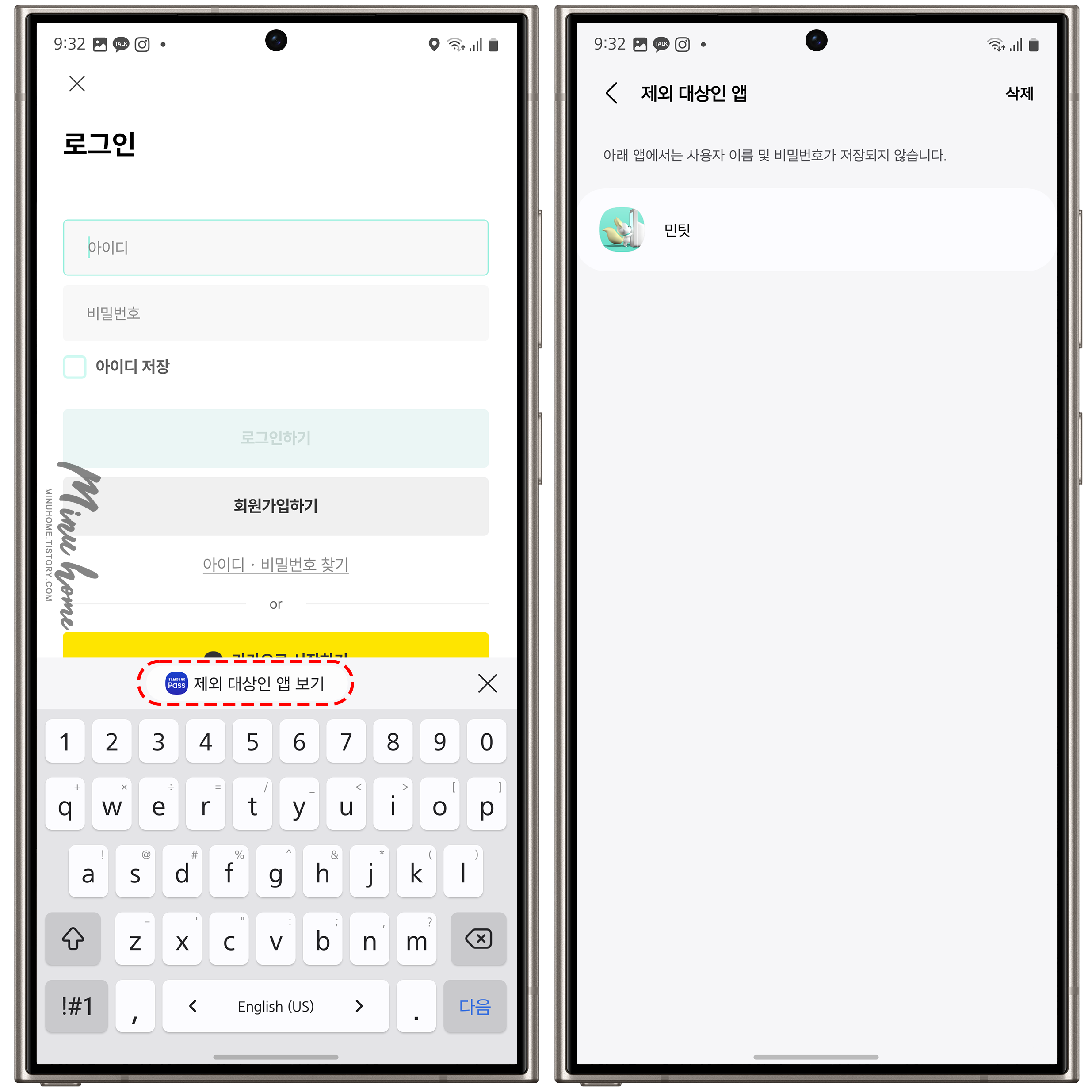삼성 패스에서 저장된 목록이 안 뜨고"제외 대상인 앱 보기" 해제하는 방법