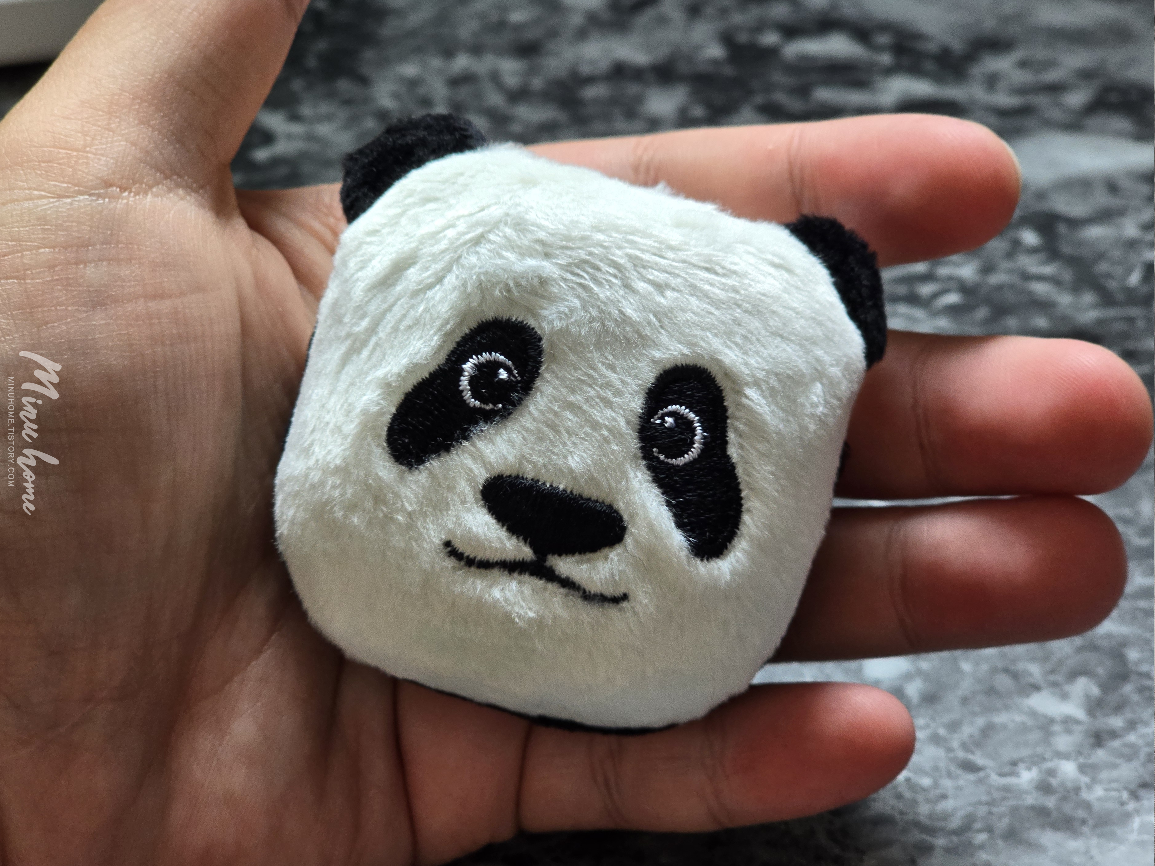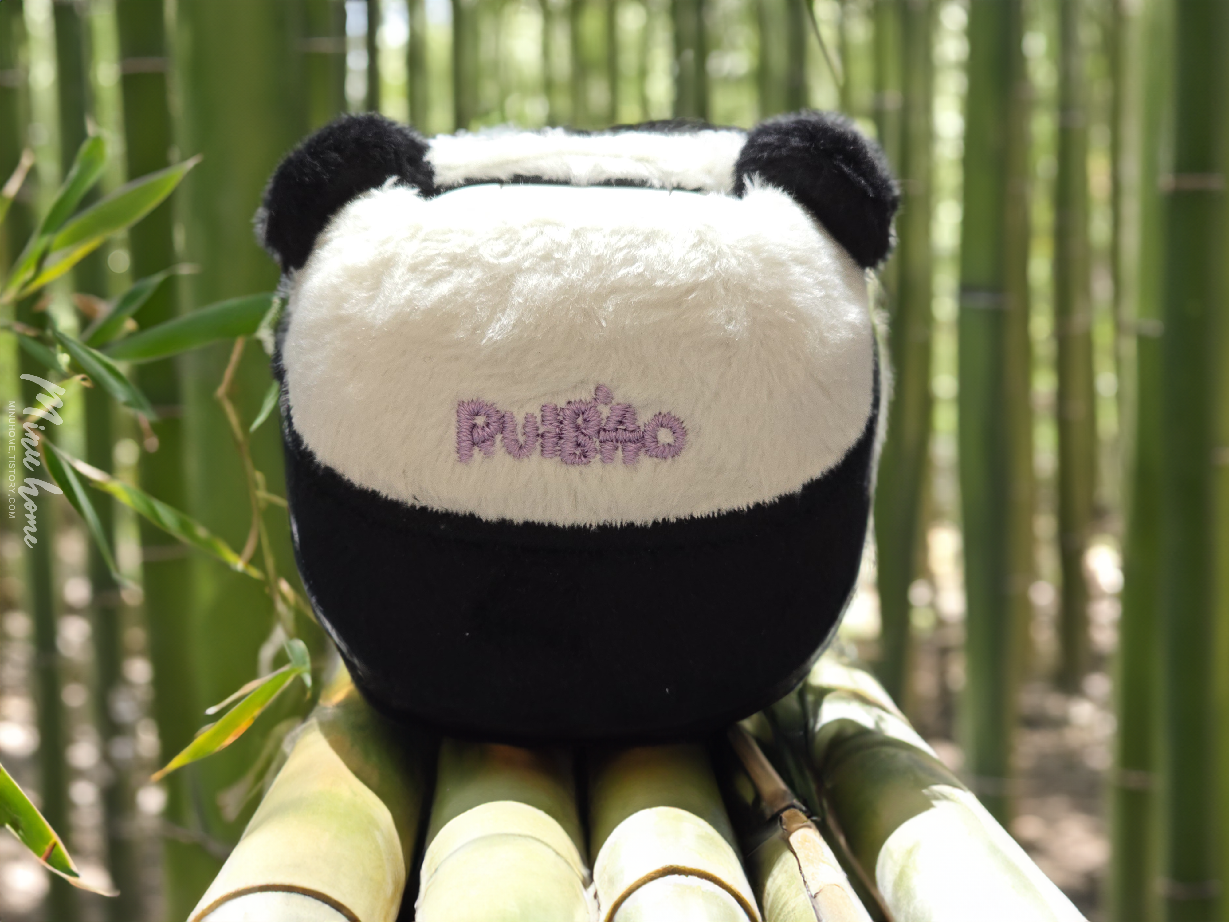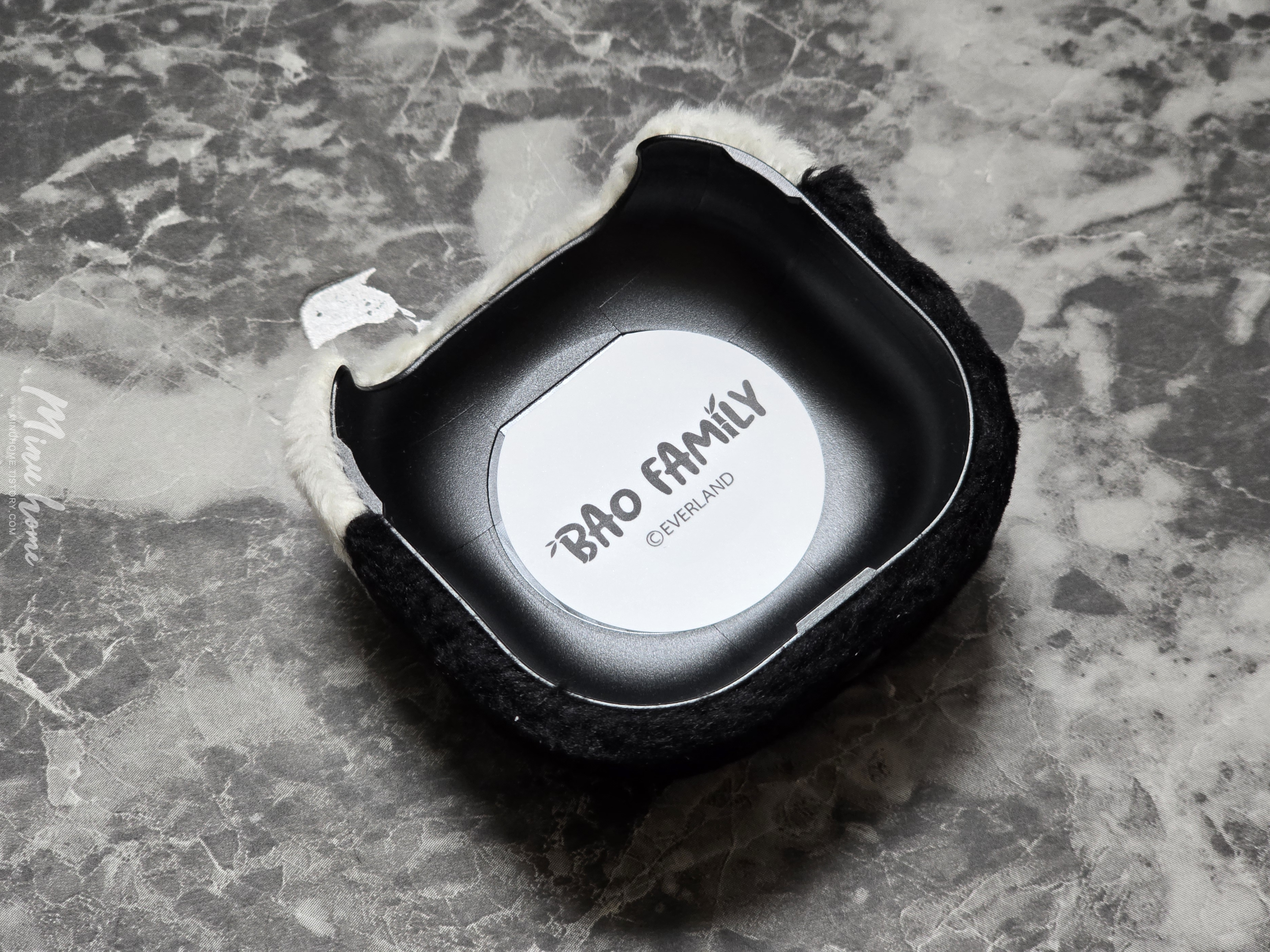 박스를 오픈해 보면 귀여운 케이스가 위아래로 들어있습니다. 재질이 보들보들 한 느낌이 들어 푹신한 느낌을 받을 수 있습니다. 전면에는 루이바오의 얼굴을 형상화 한 얼굴 모양과 후면에는 앉아있는 판다의 뒷모습과 비슷한 디자인으로 제작된 것을 볼 수 있습니다.