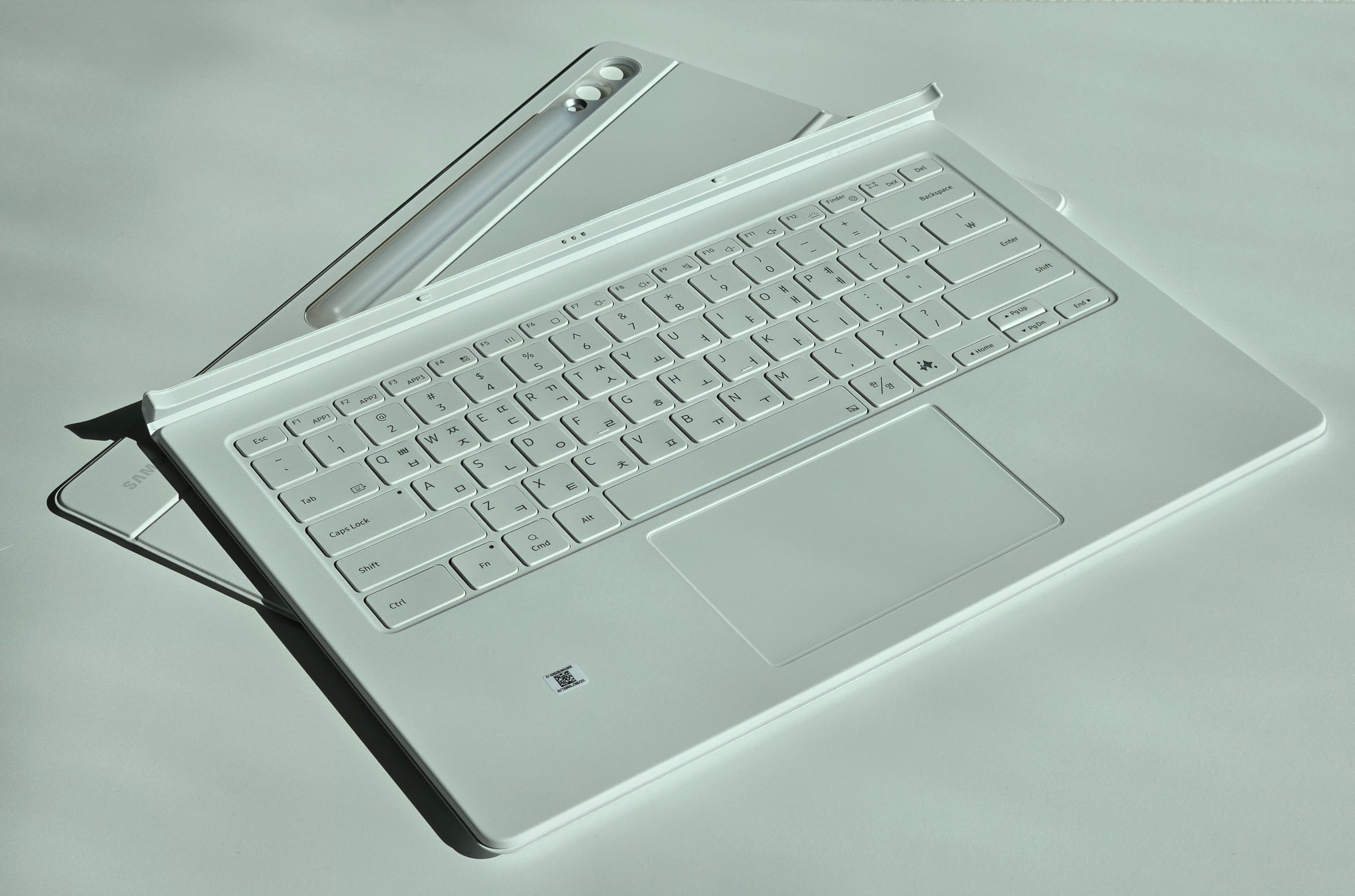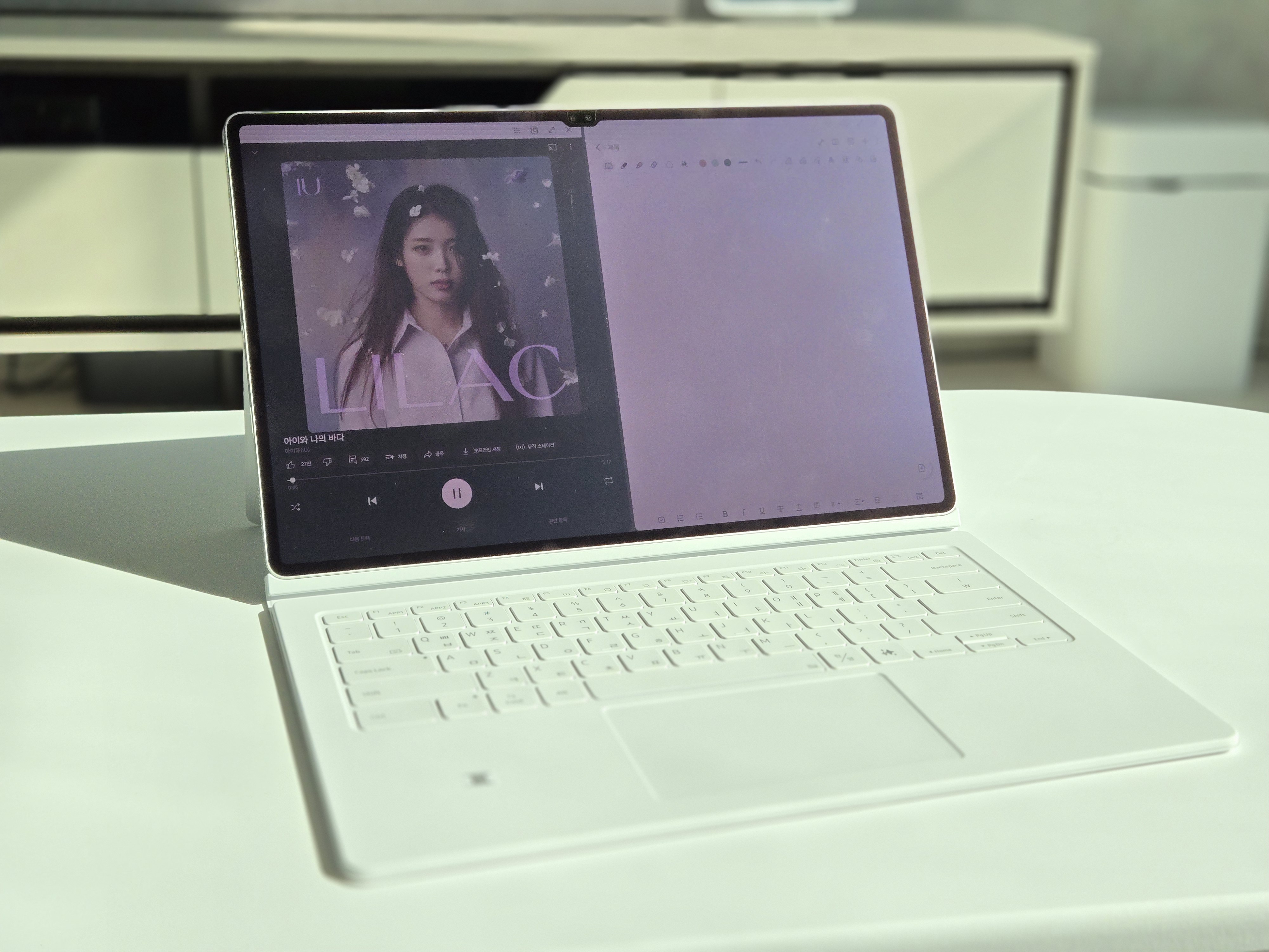 갤럭시 탭 S9 울트라에 검은색 키보드 북 커버를 사용할 때도 노트북 같다는 느낌을 많이 받았지만 화이트 색상으로