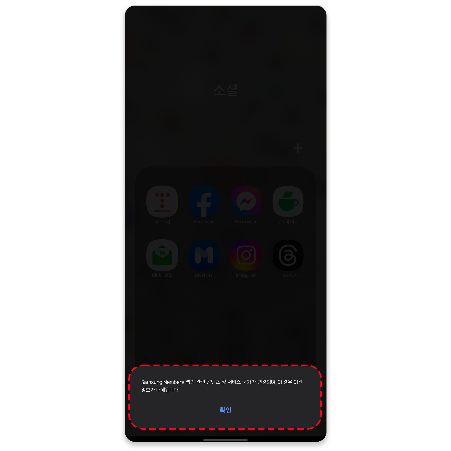 그래서 위 이미지처럼 Samsung Members 앱의 관련 콘텐츠 및 서비스 구각가 변경되며, 이 경우 이전 정보가 대체됩니다.라는 안내메시지가 나타납니다.
