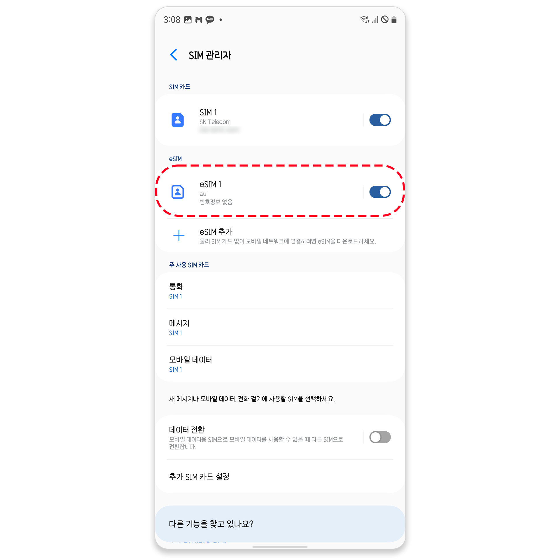 eSIM은 해당 국가의 통신사 망을 이용하면서 편리하게 사용할 수 있는 기능이고 별도로 SIM 교체 작업이 필요 없어서 너무 좋았습니다.