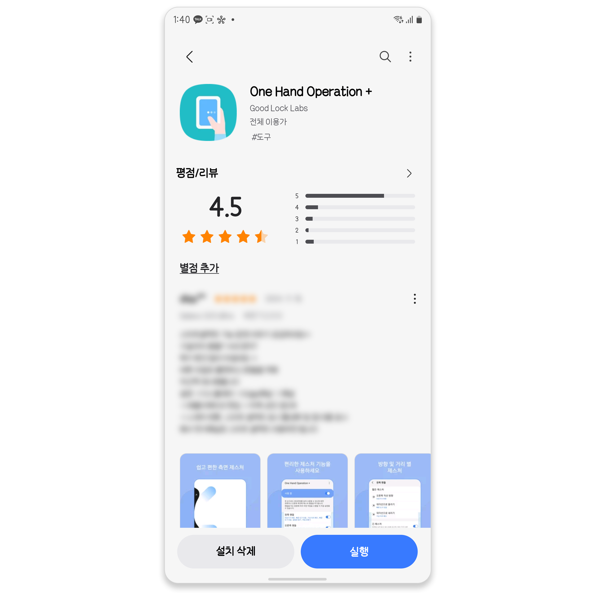 해당 앱은 갤럭시 스토어를 통해서 다운로드가 가능하며 One Hand Operation + 를 검색하셔서 다운로드할 수 있습니다.