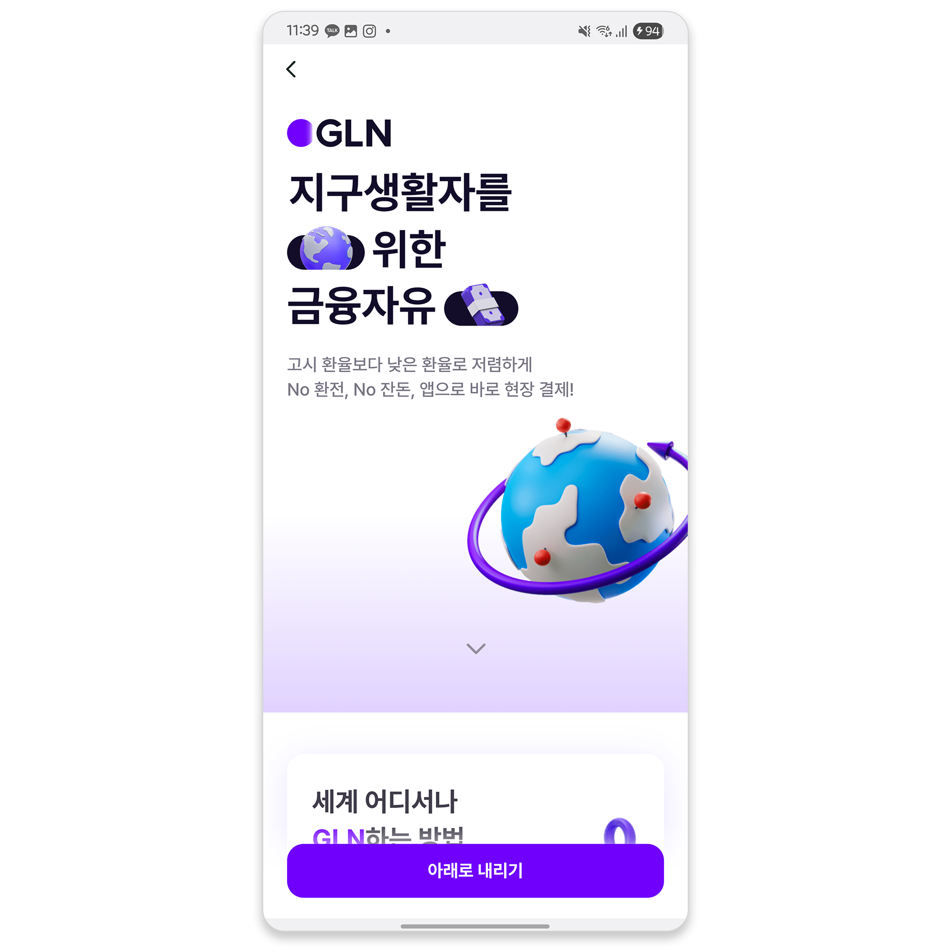 해외 가맹점을 보유한 사업자와 직접 제휴 및 시스템을 연계, 현지 가맹점에서 충전금 'GLN머니'로 결제하는 방식 금융서비스를 제공하는 결제 서비스입니다. QR을 이용한 해외 결제 방식입니다