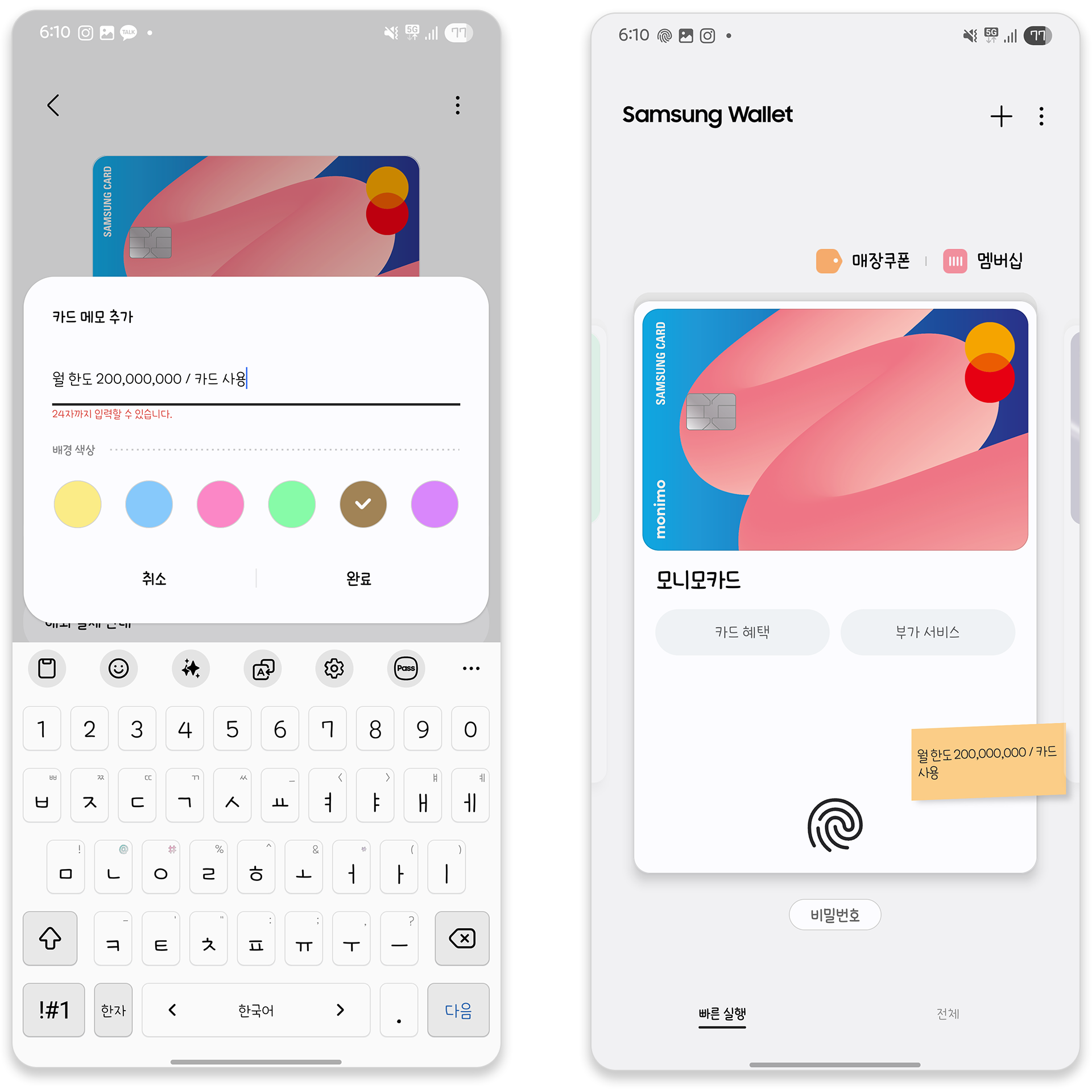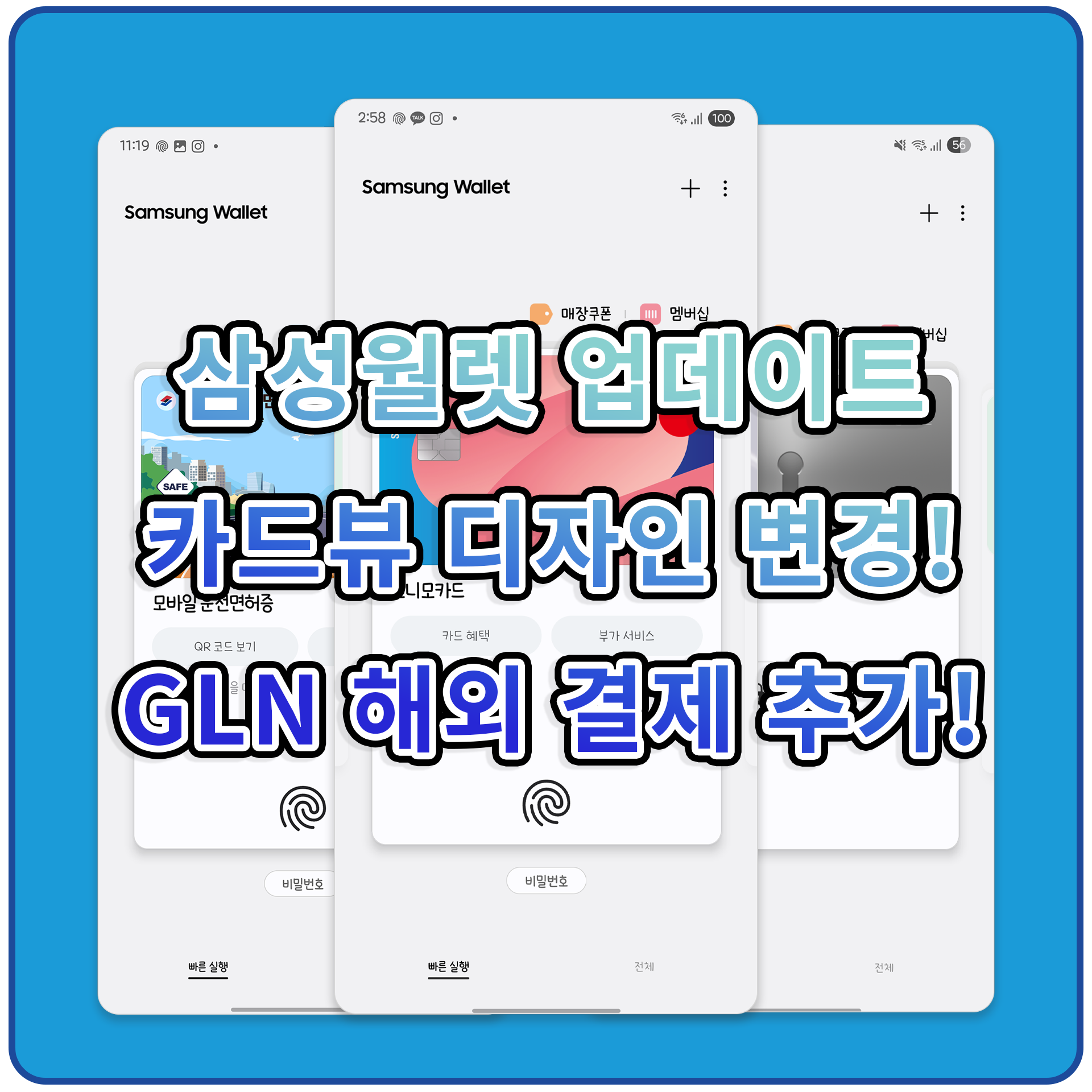 삼성월렛 업데이트 카드뷰 디자인 변경! GLN 해외 결제 추가!