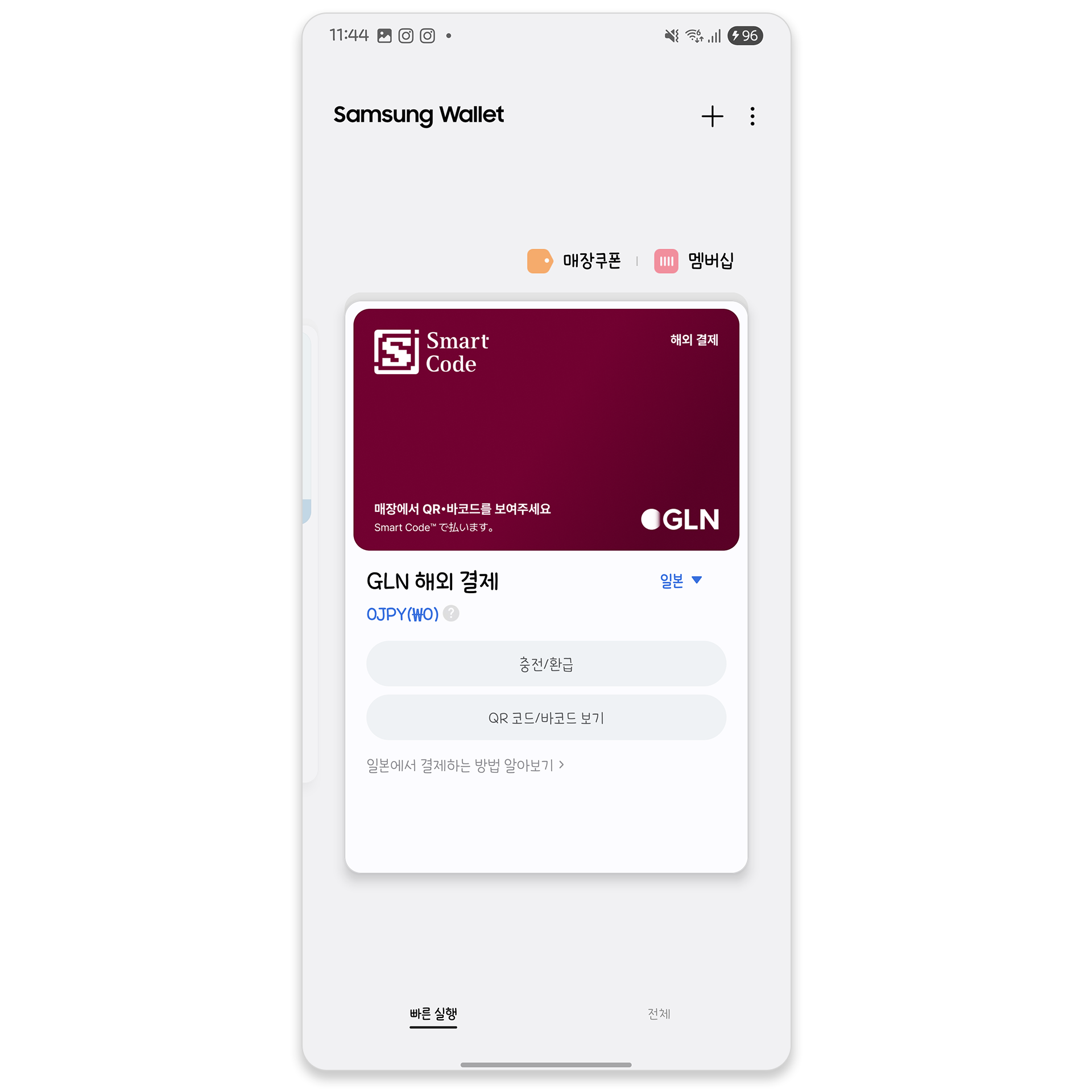 삼성월렛을 통해 GLN 결제를 사용할 수 있습니다,