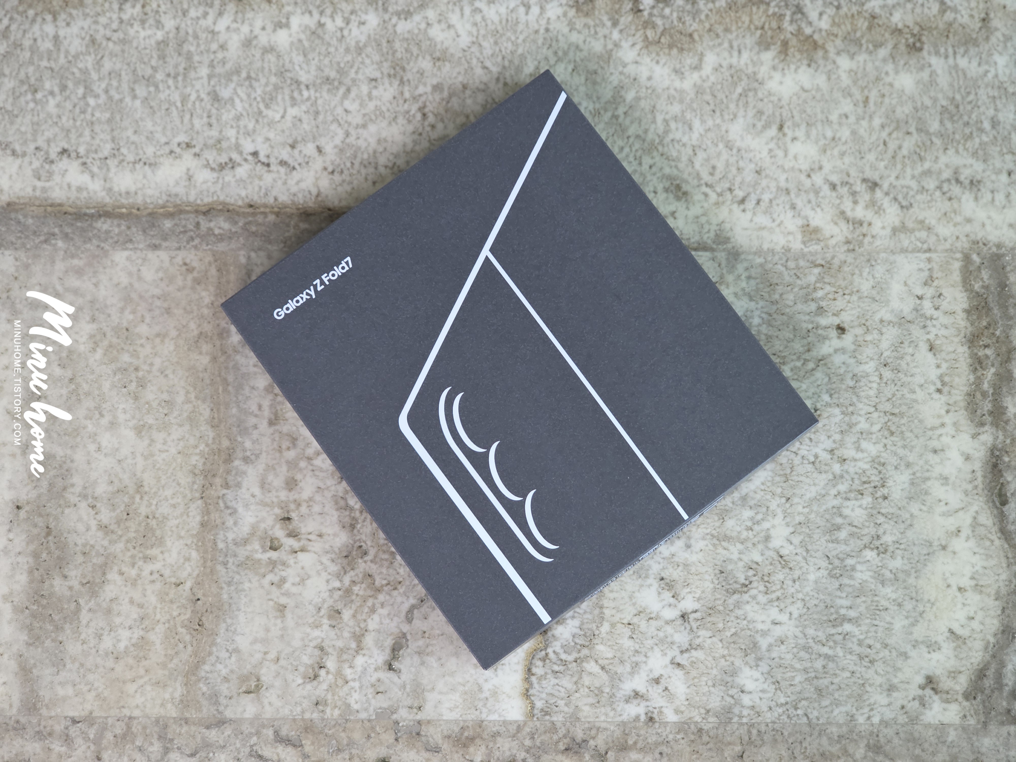 제품을 개봉하면 갤럭시 Z 폴드 7이 펼쳐진 형태로 후면을 보이고 있습니다.