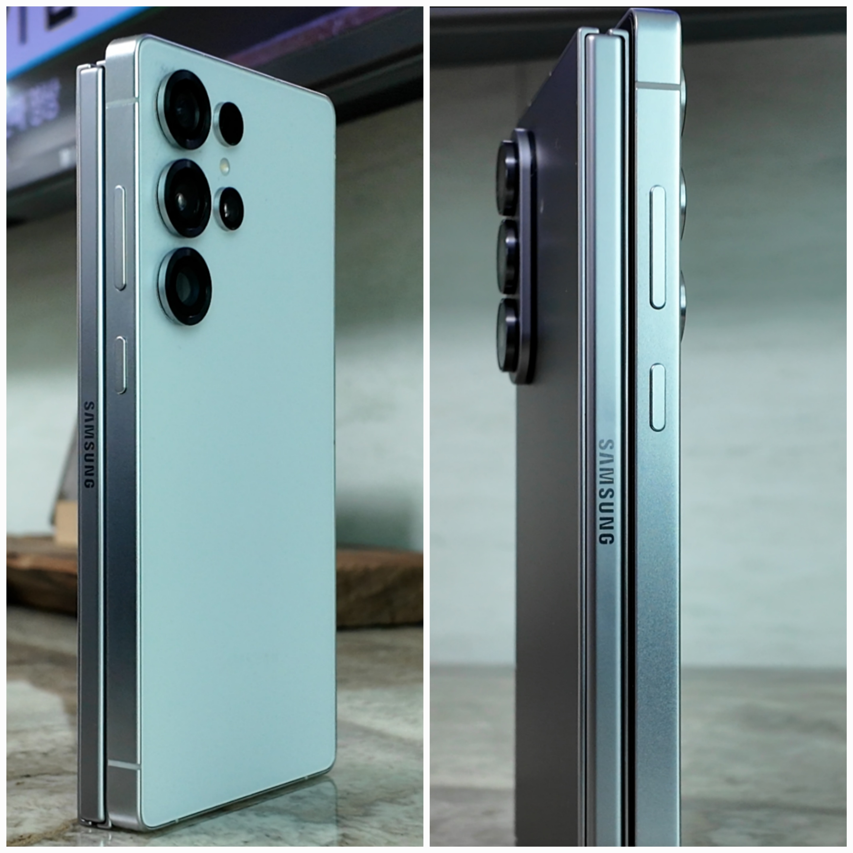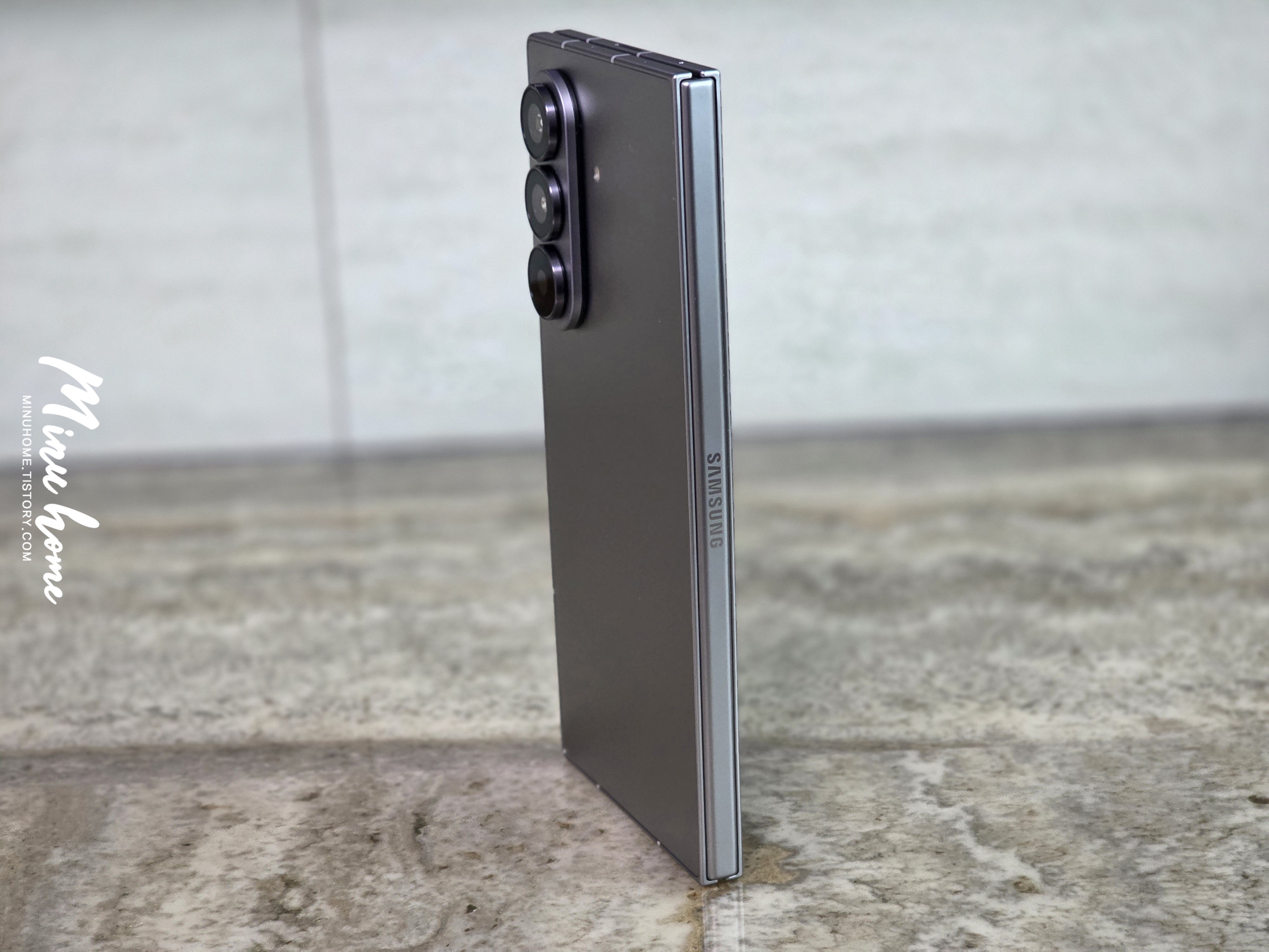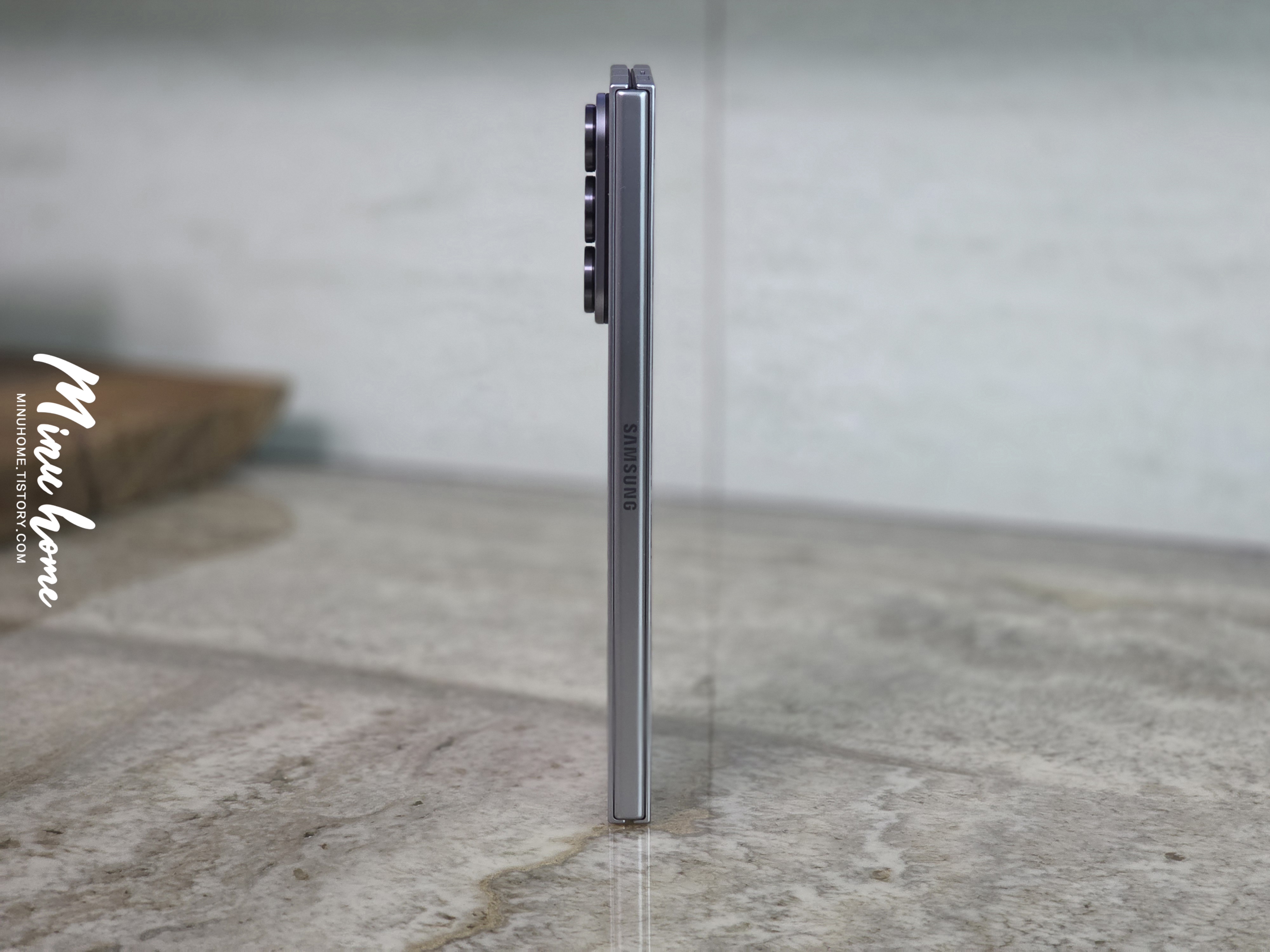 두께의 경우 접었을 때 기존 갤럭시 S25 울트라와 같은 바 형 스마트폰과의 차이가 크지 않고 오히려 더 슬림해 보이는 효과가 있습니다.