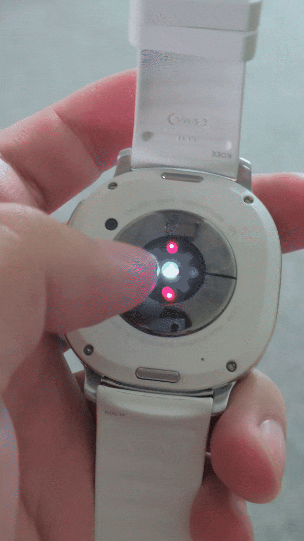 갤럭시 워치 8 후면은 무광 재질의 하판에 센서가 배치된 모습을 볼 수 있습니다. 실버제품은 하판이 화이트 색상이라 조금 걱정이 있긴 했습니다.