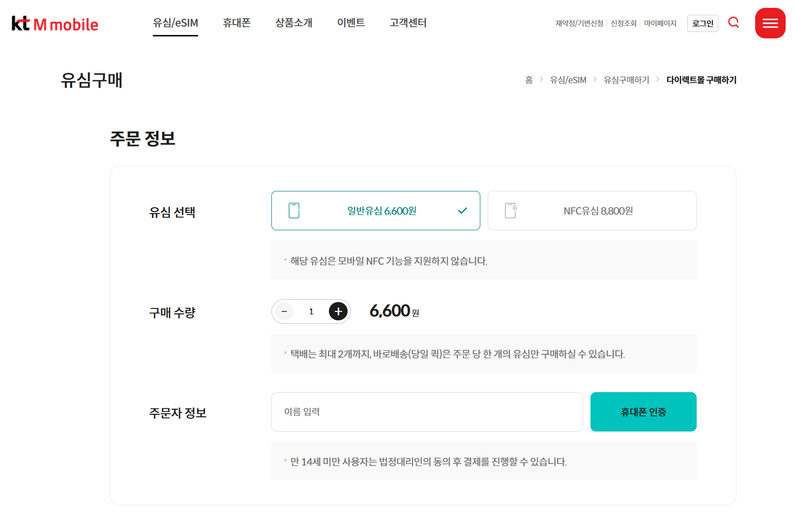 3. kt M모바일 유심 구매 경로