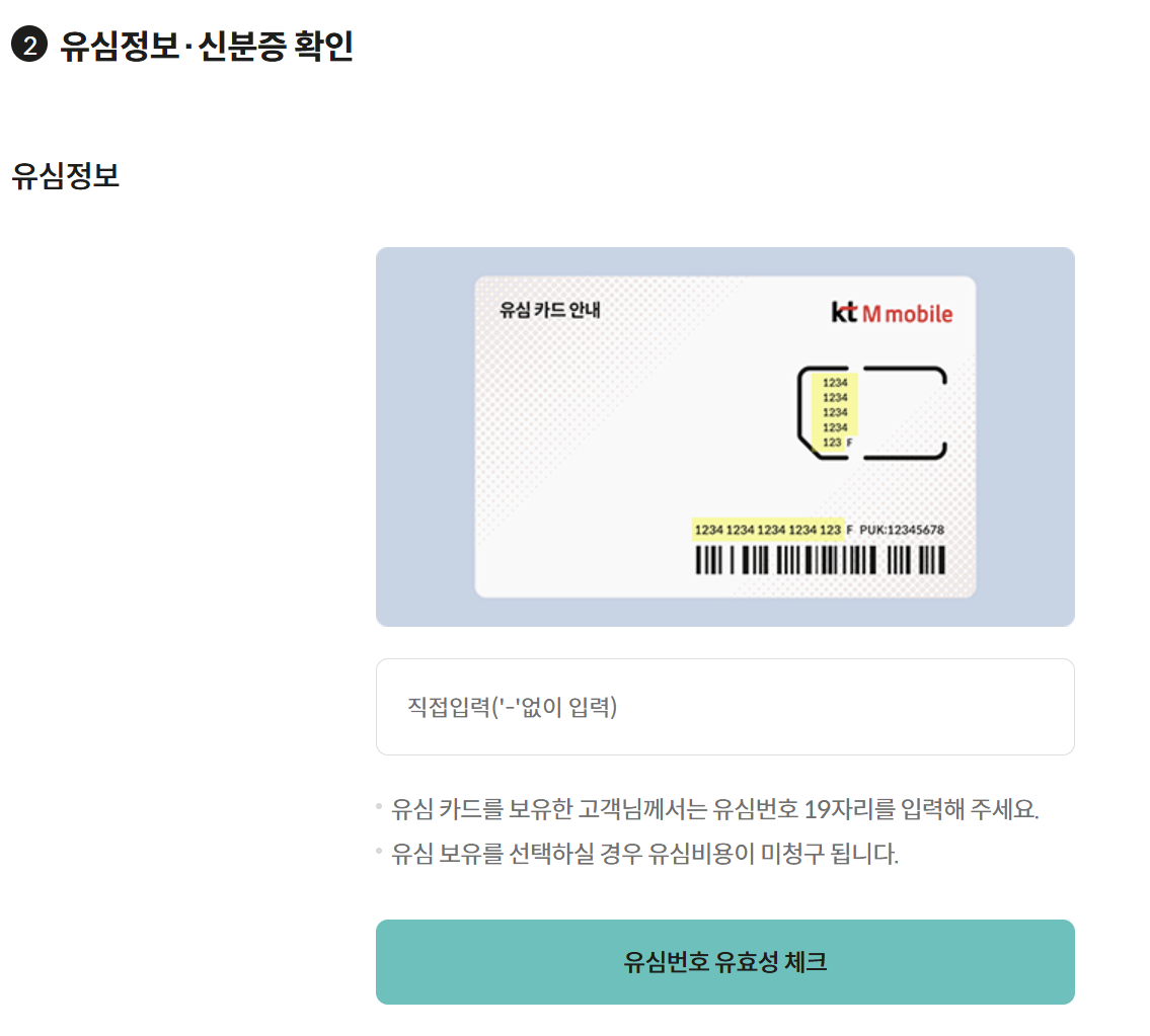 이후 개인정보 확인이 끝난 후 구매했던 유심의 정보를 확인해 홈페이지에 유심 정보를 입력해 주세요.