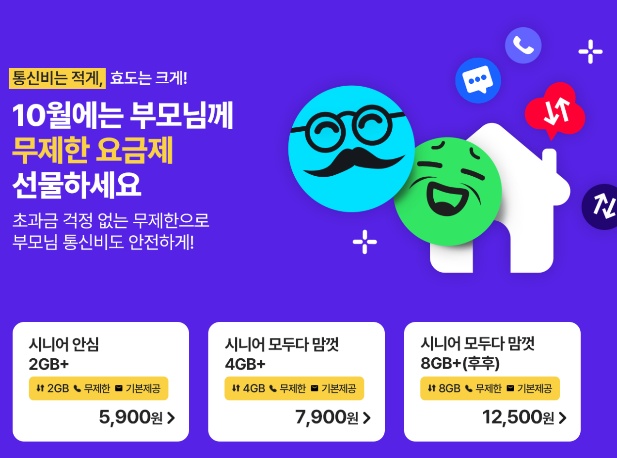 * 시니어 요금제는 만 65세 이상 고객만 가입이 가능한 상품입니다.