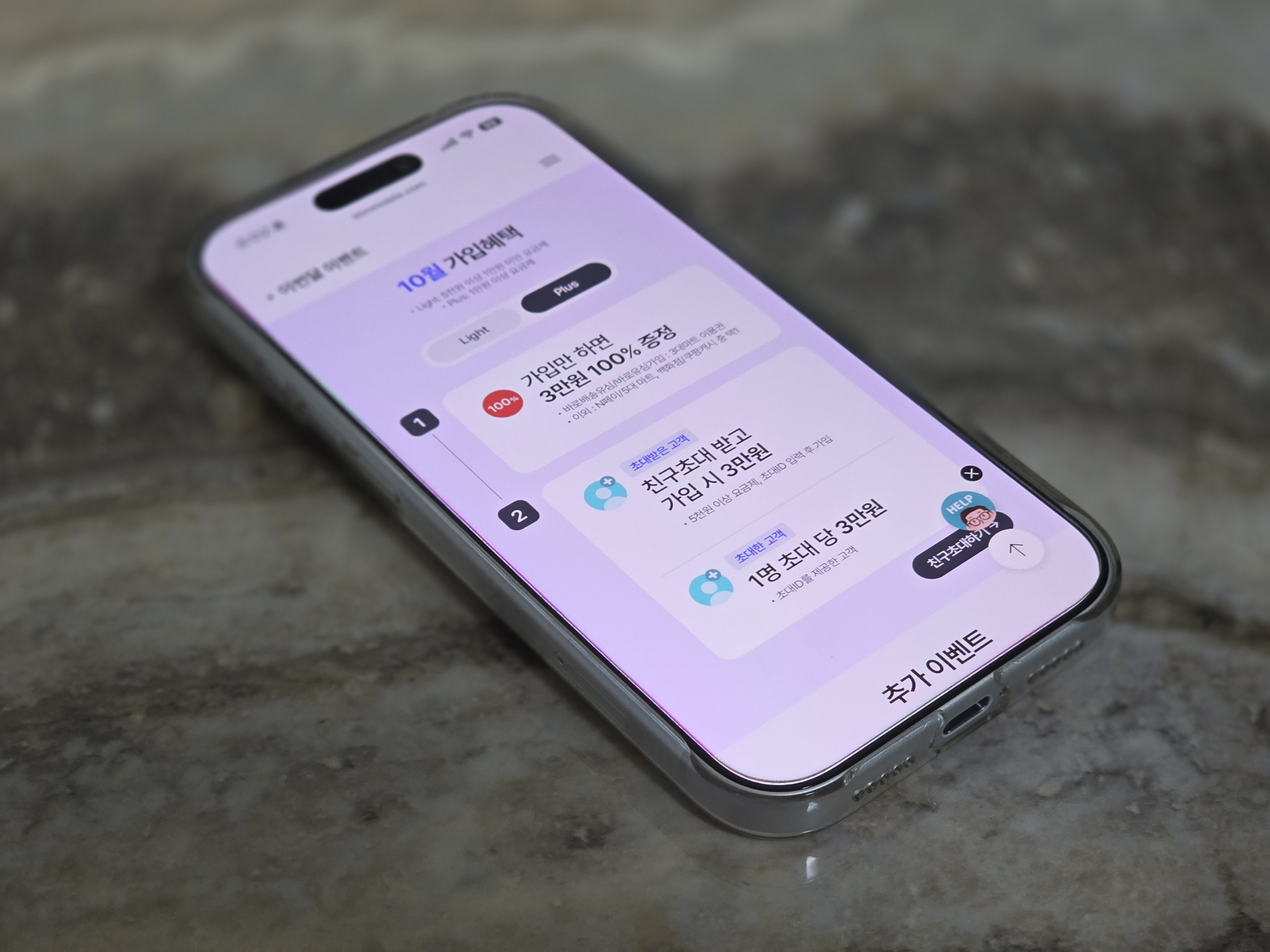 해당 배너를 선택하면 10월 가입 혜택으로 라이트와 플러스에 따라 혜택이 다른데 라이트 기준으로 가입만 해도 3만 원 100% 증정 이벤트도 진행하고 친구를 초대하면 1명 초대당 3만 원 추가 지급도 이루어진다고 합니다.